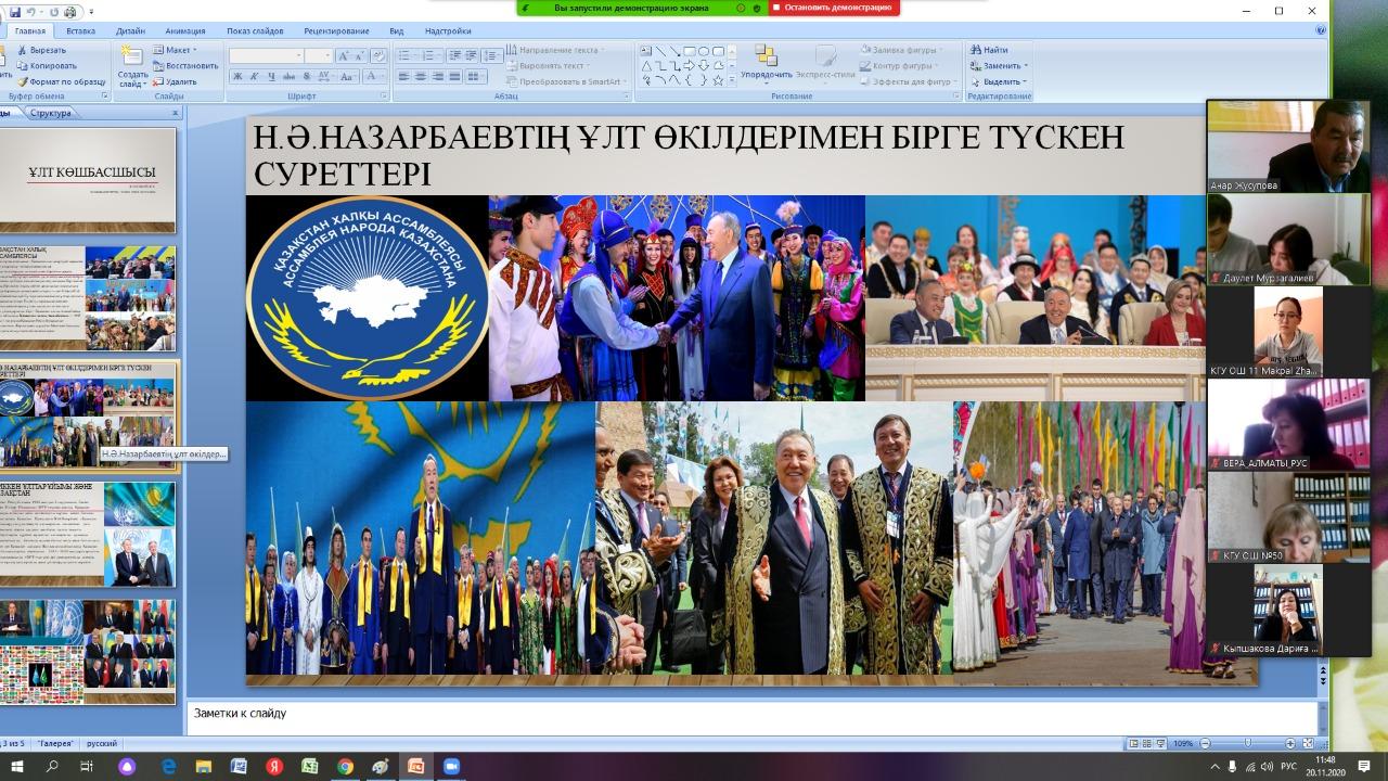 2020 жылдың 20 қарашасында Алматы қаласы Түрксіб ауданына қарасты №84,№11,№50,№85,№76 жалпы білім беретін мектептері мен №59,№83 мектеп-гимназиясының мектеп директорларының тәрбие ісі жөніндегі орынбасарларының ұйымдастыруымен «Ұлт Көшбасшысы-Қазақстан Республикасының тәуелсіз мемлекетінің негізін қалаушы» атты тақырыпта аудандық конференция өткізілді. Конференцияның мақсаты: Еліміздің өткен тарихына,ата-бабалар мұрасына құрмет көрсете отырып болашақ ұрпақты тәрбиелеу.