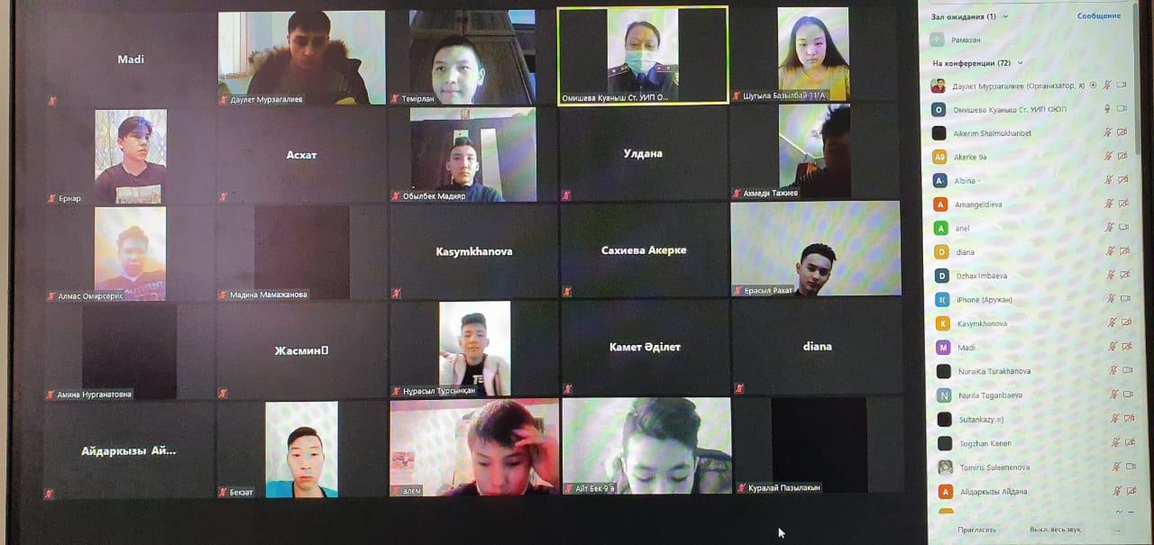 Алматы қаласы Түрксіб ауданы полиция басқармасының полиция майоры Қ.Н.Өмішованың және мектеп әкімшілігінің қатысуымен 23.12.2020жылы “Жасөспірім және қылмыс” тақырыбында мектебіміздің 8,9,10,11 сынып оқушыларымен онлайн түрде ҚР қылмыстық Кодексінің 120,121, 122 баптарына түсіндірме жұмыстары жүргізілді. Негізгі мақсаты: кәмелетке толмаған оқушылар арасында құқықбұзушылықпен қылмысты болдырмаудың алдын-алу. Оқушылардың құқықтық білімдерін жетілдіру. Онлайн кездесу барысында оқушылар өздерін толғандырған сұрақтарын қойып , жауаптарын алды. Осы орайда Түрксіб ауданының полиция басқармасына және полиция майоры Қ.Н.Өмішоваға алғыс айтамыз!