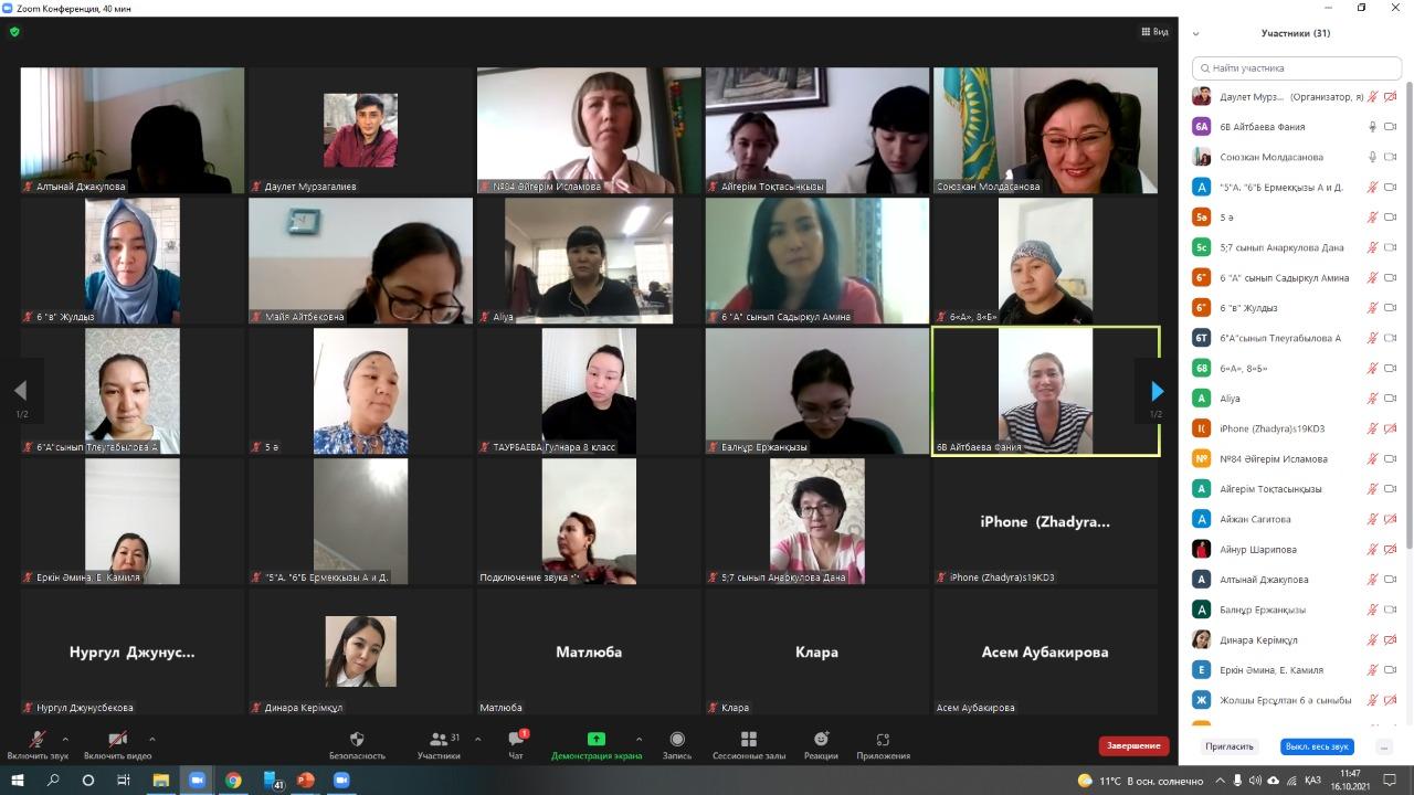 Алматы қаласы Түрксіб ауданы №84 ЖББ мектепте қазан айының 16 күні «Директорлық сенбі – ата - ана үні» тақырыбында 5-8 сынып ата - аналармен жиналыс