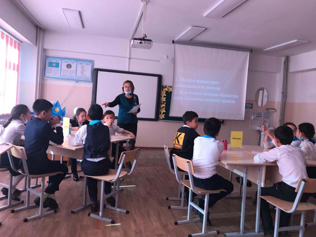 Алматы қаласы Түрксіб ауданы №84 ЖББ мектепте 5 сыныптар арасында «Тарихыңды таны» атты зияткерлік сайыс сабағы өткізілді. Мақсаты : ғылым, білімге же
