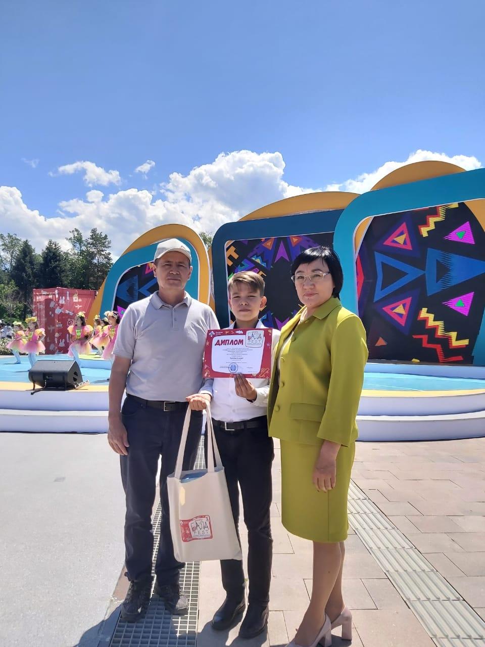 Еренбаев Элмуродты марапаттап, бағалы сыйлық табыс етті. Аталған салтанатты іс-шараға мектебіміздің директоры С.Ш. Молдасанова да қатысып, шәкіртіміздің жеткен белесіне ортақтасты.