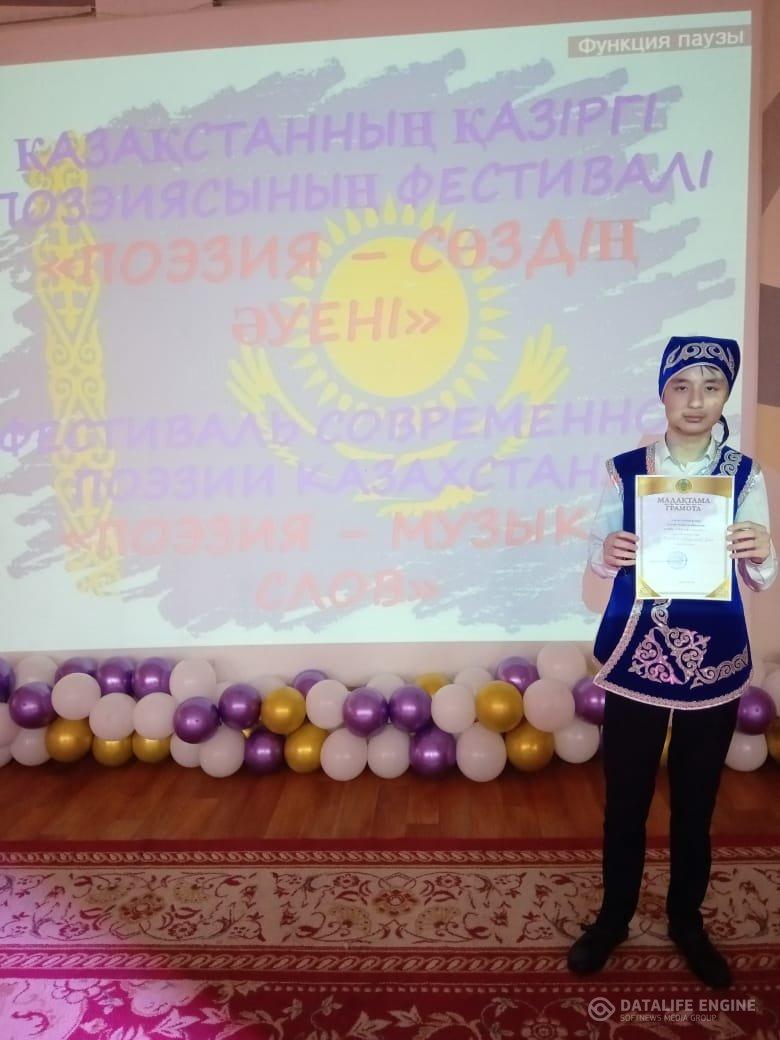 Алматы қаласы Түрксіб ауданы #84 ЖББМ 8 "Б" сынып оқушысы Мауленов Ернұр Дәулетұлы аудандық "Поэзия - сөз әуені" атты қазіргі поэзияның фестиваліне қа