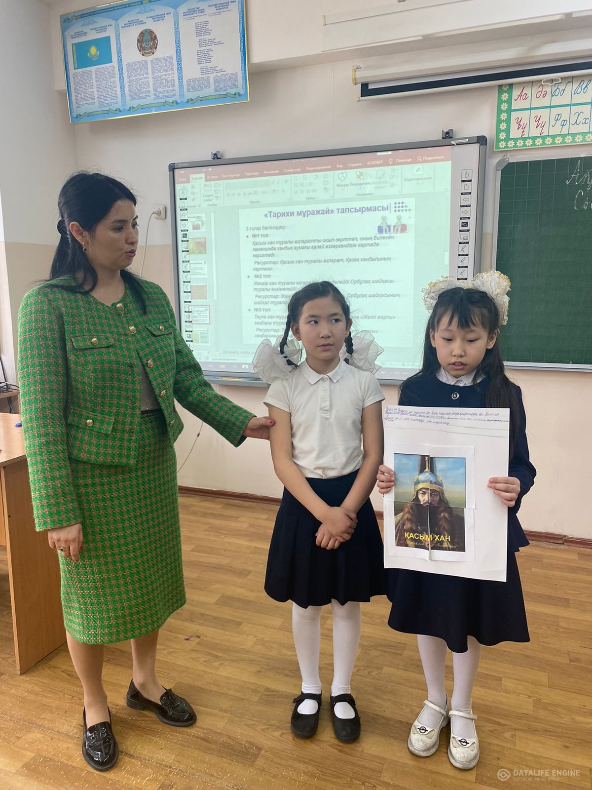 №84 ЖББ мектепте 24 ақпан бастауыш сынып бірлестігінің онкүндігі аясында бастауыш сынып мұғалімі, педагог – сарапшы Г.А.Есбаева 3 «Б» сыныбында дүниетану пәнінен «Қазақ жерінің даңқты хандары» тақырыбында ашық сабақ өтті. Сабақтың мақсаты: Ұлы хандармен (Қасым хан, Тәуке хан және Жәңгір хан) таныстыру, мағлұмат беру, хандардың Қазақстан тарихындағы рөлін түсіндіру. Сабақ барысында оқушылар хандардың есімдеріне байланысты топқа бөлініп, топтық жұмыстар жүргізілді. Оқушыларды сергіту мақсатында нейрожаттығу орындады. Мұғалімнің сабақтағы әдіс – тәсілдері тақырыпқа сәйкес сабақтастығы, құрылымы өте жақсы. Оқушылар сабаққа белсене қатысты.