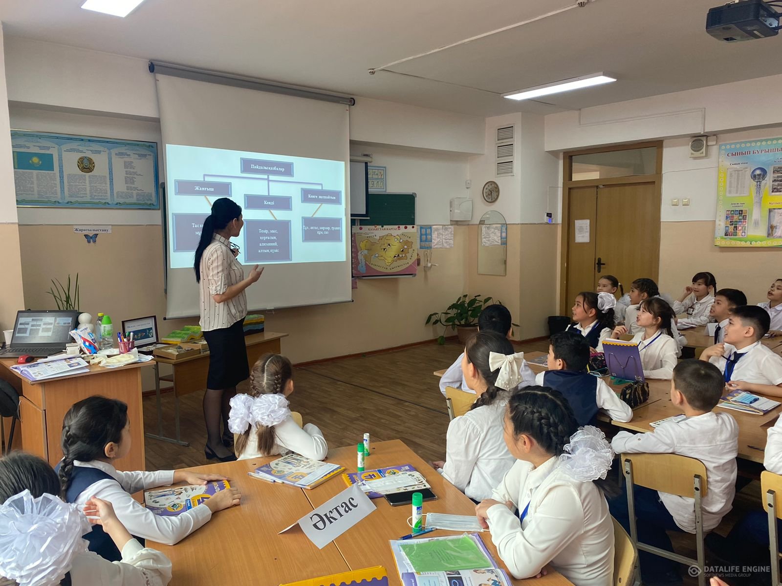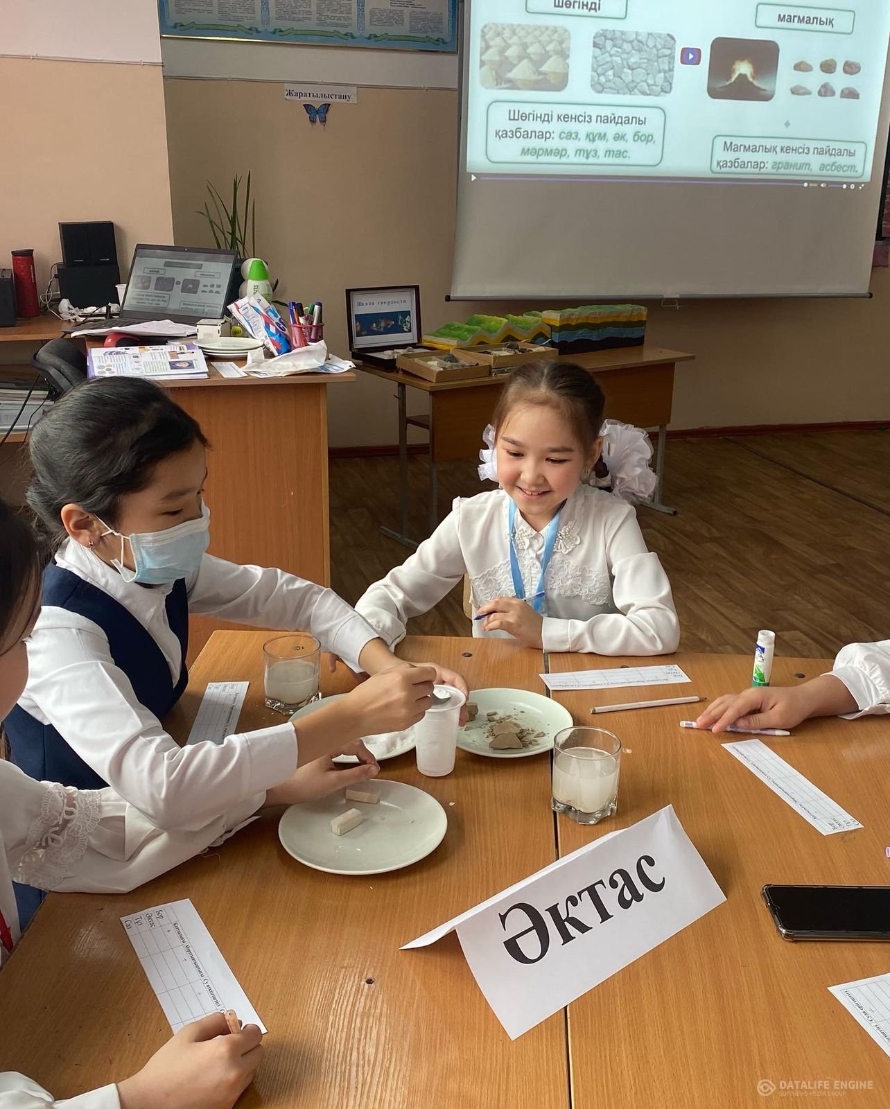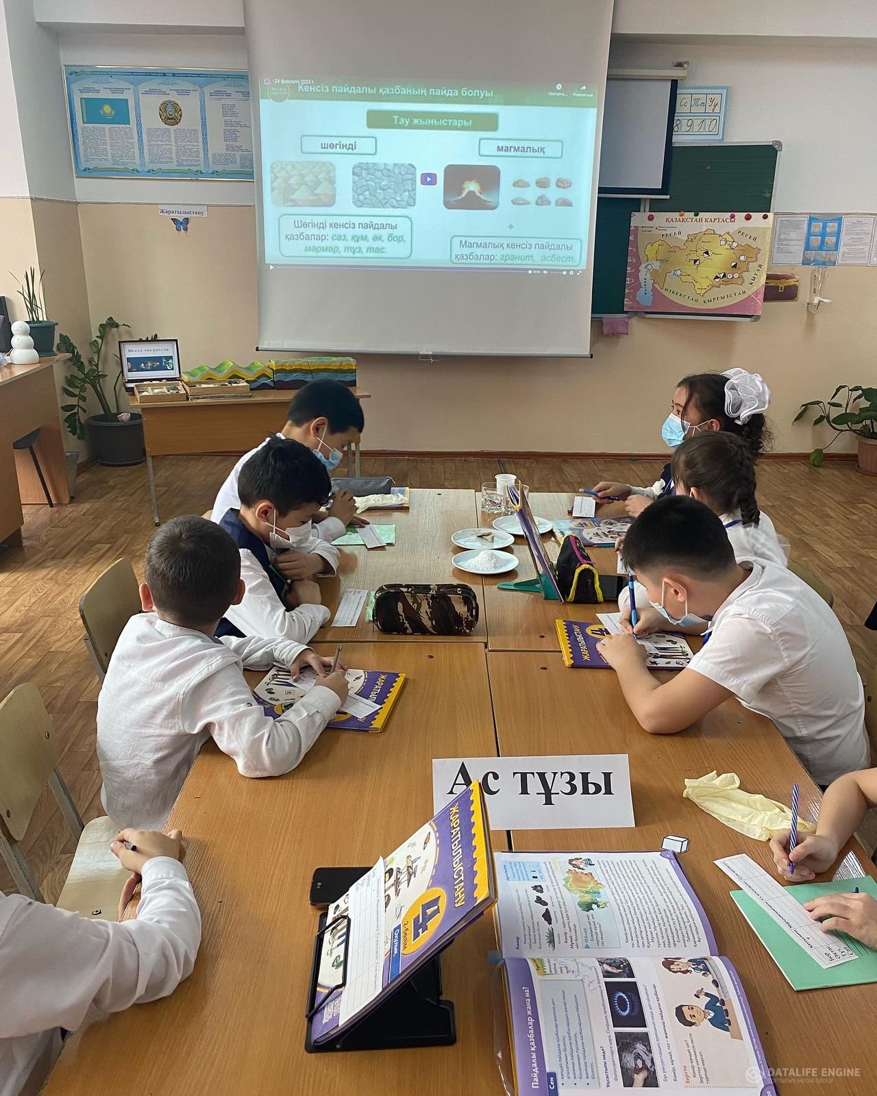№84 ЖББ мектепте 24 ақпан бастауыш сынып бірлестігінің онкүндігі аясында бастауыш сынып мұғалімі, педагог – сарапшы Р.С.Өзбекбаева 4 «Ә» сыныбында жаратылыстану пәнінен «Кенсіз пайдалы қазбалар» тақырыбында ашық сабақ өтті. Сабақтың мақсаты: кенсіз пайдалы қазбалар туралы түсінік қалыптастыру, кейбір пайдалы қазбалардың (бор, тұз, әктас, саз, мұнай, гранит, көмір) қолданылу саласын анықтау. Сабақ барысында оқушылар кенсіз пайдалы қазбаларға сәйкес топқа бөлініп, топтық, тәжірибе жұмыстарын жүргізді. Оқушылар сабаққа белсене қатысты. Ашық сабақ қызықты өтті.