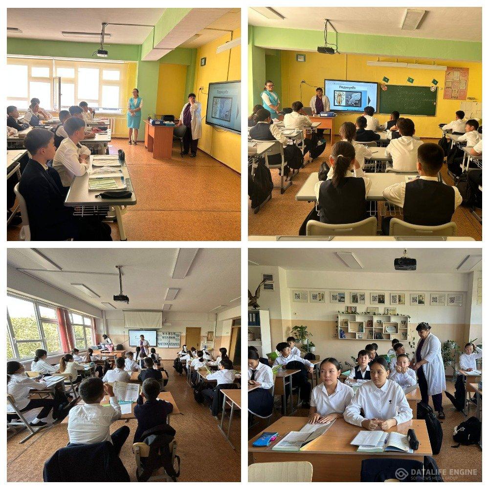 Алматы қаласы Түрксіб ауданы №84 ЖББМ қыркүйек айының 3 күні мектеп медбикесі Мамедова Б.С және ДТІЖО Құнанбай М.Б 8-10 сынып оқушыларына педикулез және дерматомикоздың алдын алуы бойынша түсіндірме жұмысын жүргізді.