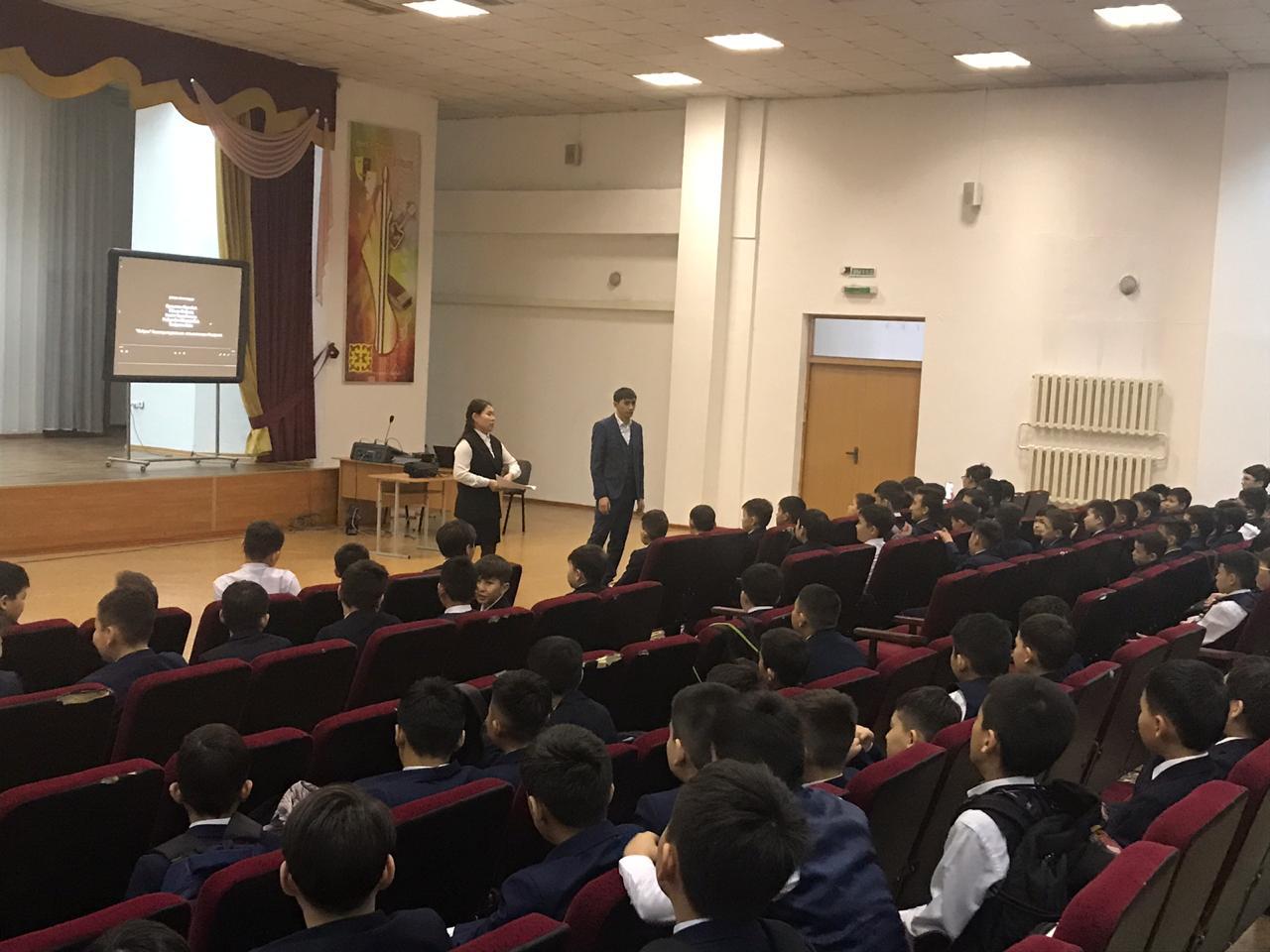 № 84 ЖББ мектепте 16.01.2020 ж. күні мектеп тәлімгері Райымбекова Г.М және ДТІЖ орынбасарларының ұйымдастыруымен "Тәртіп және біз" тақырыбында 5-8 сынып ұлдарымен дәріс түріндегі тәрбие сағаты болып өтті. Мақсаты:
