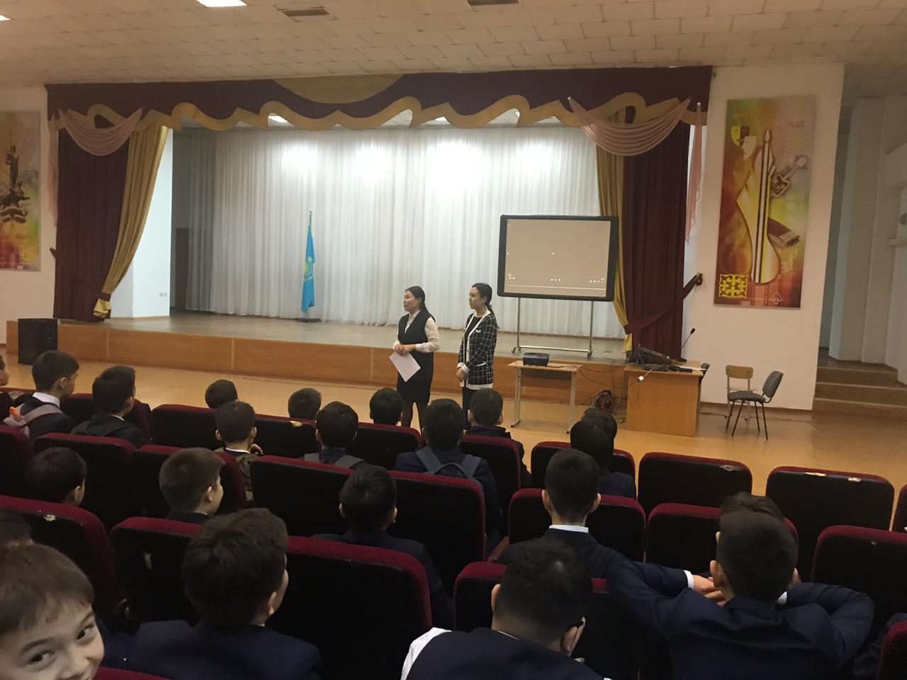 № 84 ЖББ мектепте 16.01.2020 ж. күні мектеп тәлімгері Райымбекова Г.М және ДТІЖ орынбасарларының ұйымдастыруымен "Тәртіп және біз" тақырыбында