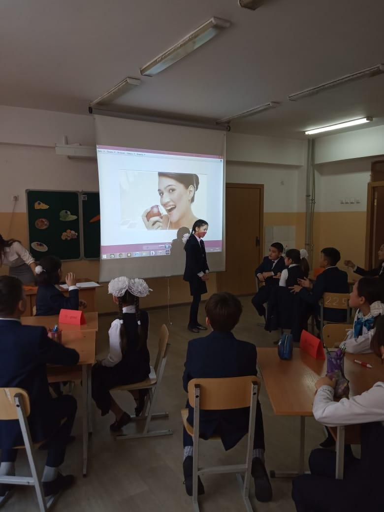 Алматы қаласы Түрксіб ауданы №84 жалпы білім беретін мектепте ағылшын және орыс тілдері пәнінің апталығы бүгін де жалғасуда. Ағылшын тілі пәні мұғалімі Палтаева Нигара Якупжановна "Аll about health" тақырыбында сыныптан тыс тәрбие жұмысын өтті. Өткен тәрбие жұмысының мақсаты: салауатты өмір салтын сақтау және ағылшын тілінде өз ойларын анық жеткізе білу.