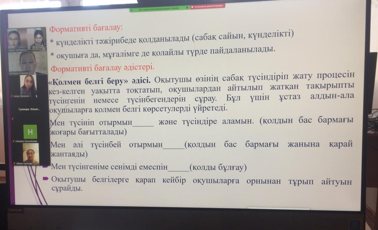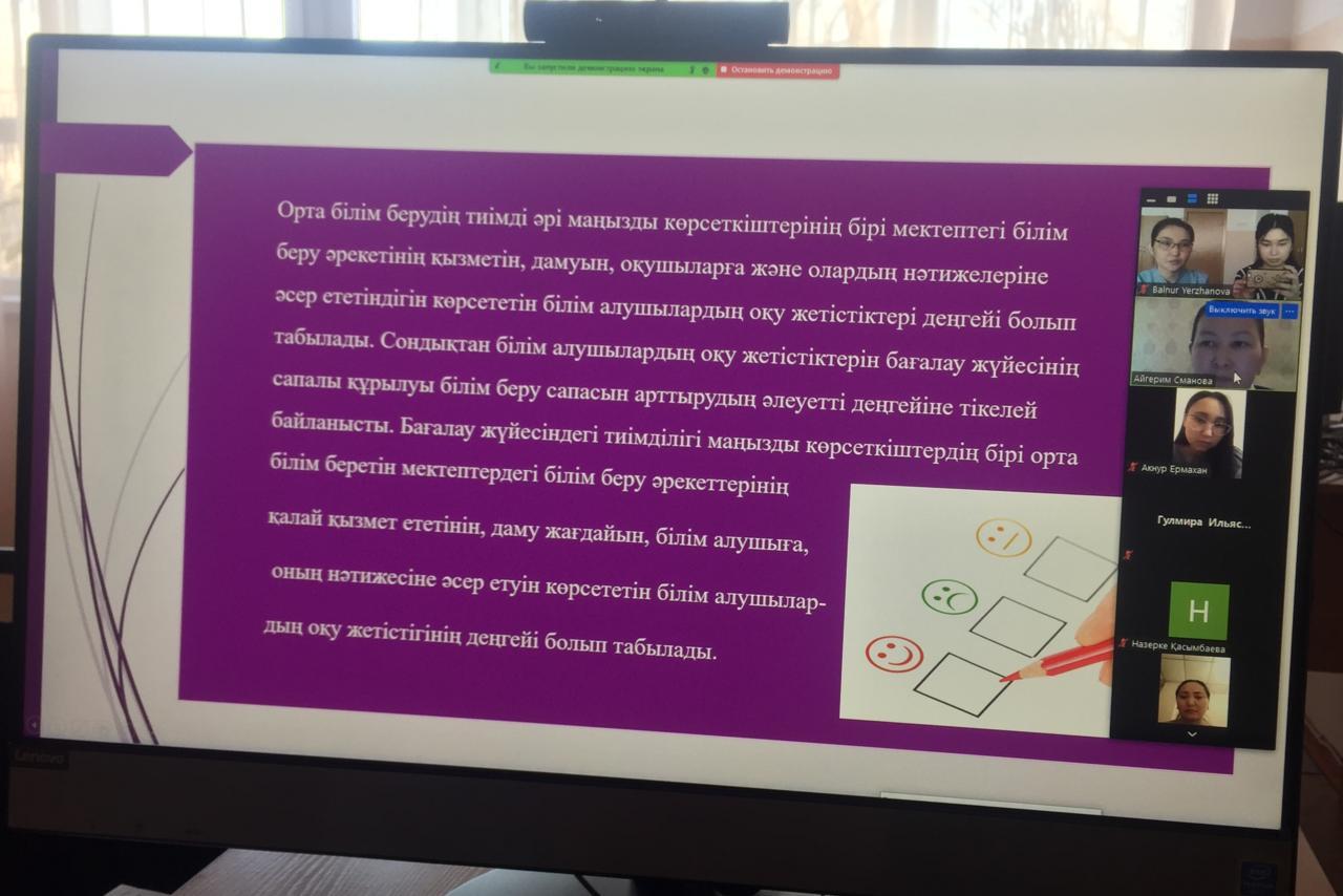 Алматы қаласы Түрксіб ауданы 84 ЖББ мектептің жас ұстаздарының шығармашылық, кәсіби құзіреттіліктерін арттыру мақсатында қаңтар айында ұйымдастырылған іс- шара жоспарына сәйкес 16.01.2021 жылы информатика пәні мұғалімі Орынбасар Гүлназ Сансызбайқызы, ағылшын пәні мұғалімдері Сманова Әйгерім және Ержанқызы Балнұрдың ұйымдастыруымен “Білім алушылардың оқу жетістіктерін жеке жинақтаушы бағалау және оны компьютерлік қолдау технологиясы” тақырыбында семинар өткізілді. Семинар өте жоғары деңгейде өтті. Еңбектеріңіз өрлеп тек биік белестерден көріне беріңіздер!