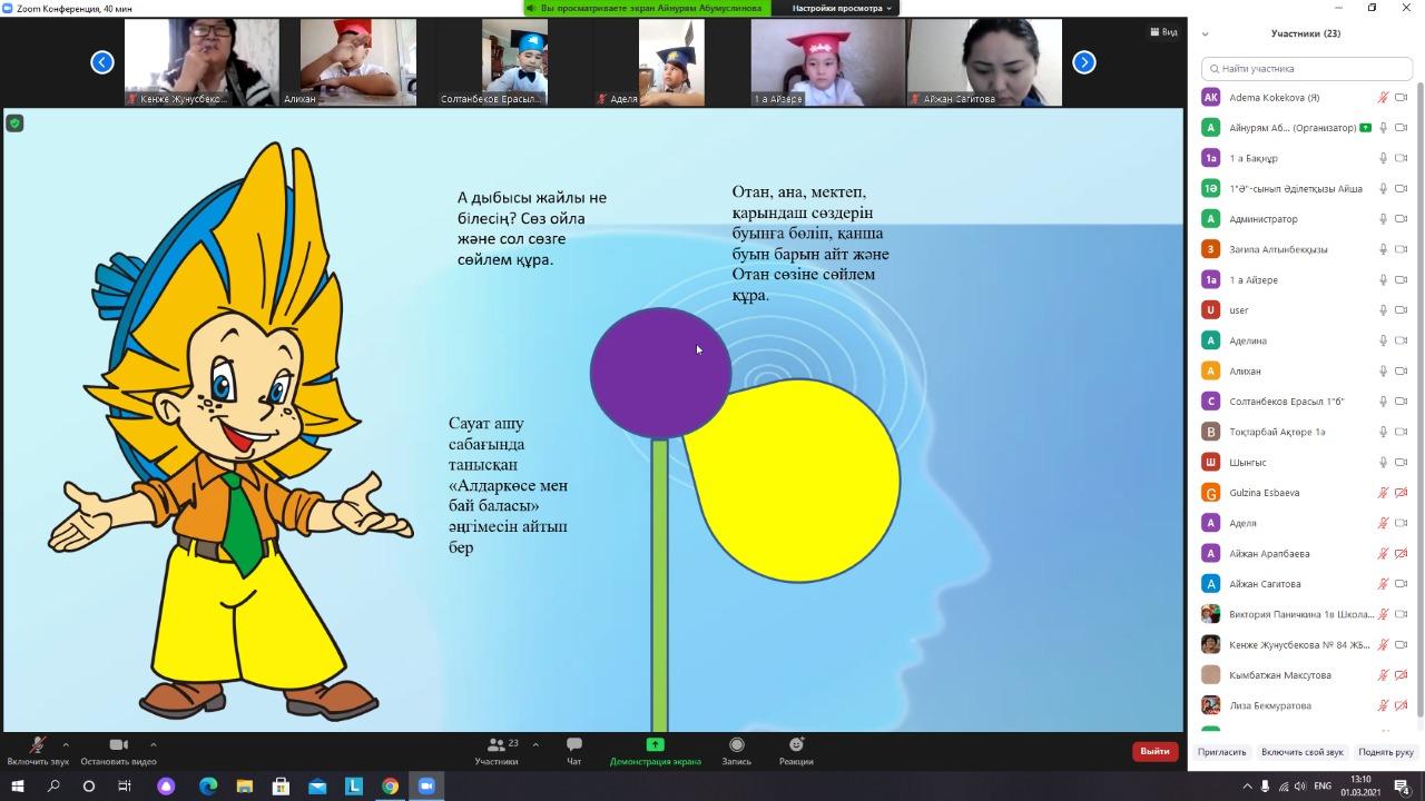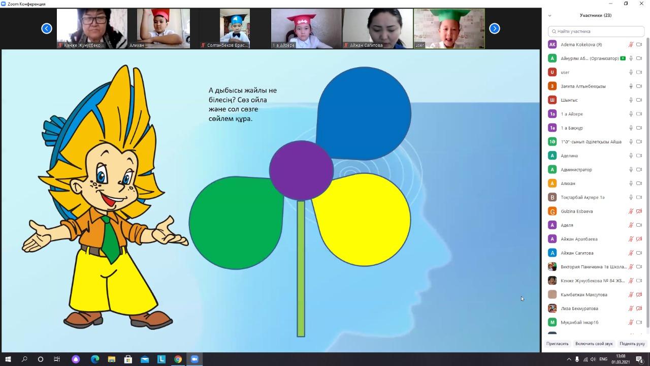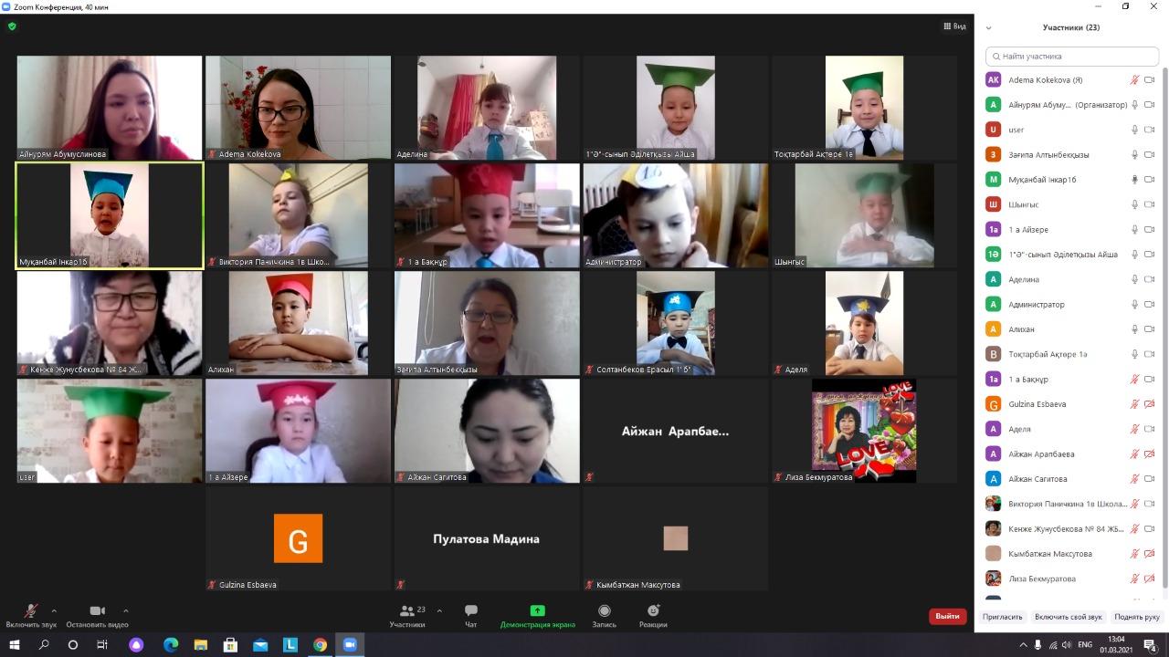 КММ №84 жалпы білім беретін мектепте 1 наурыз 2021 жылы бастауыш сынып әдістеме бірлестігінің онкүндік іс-шарасы аясында 1 сыныптар арасын бастауыш с