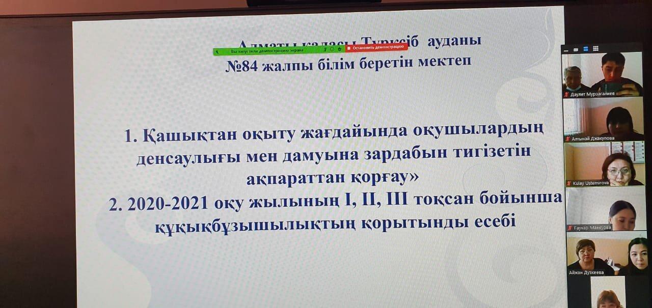 Алматы қаласы Түрксіб ауданы №84 жалпы білім беретін мектепте 30.04.2021 ж. "Оқушылардың функционалдық сауаттылығын дамыту жолындағы оқыту мен тәрбие
