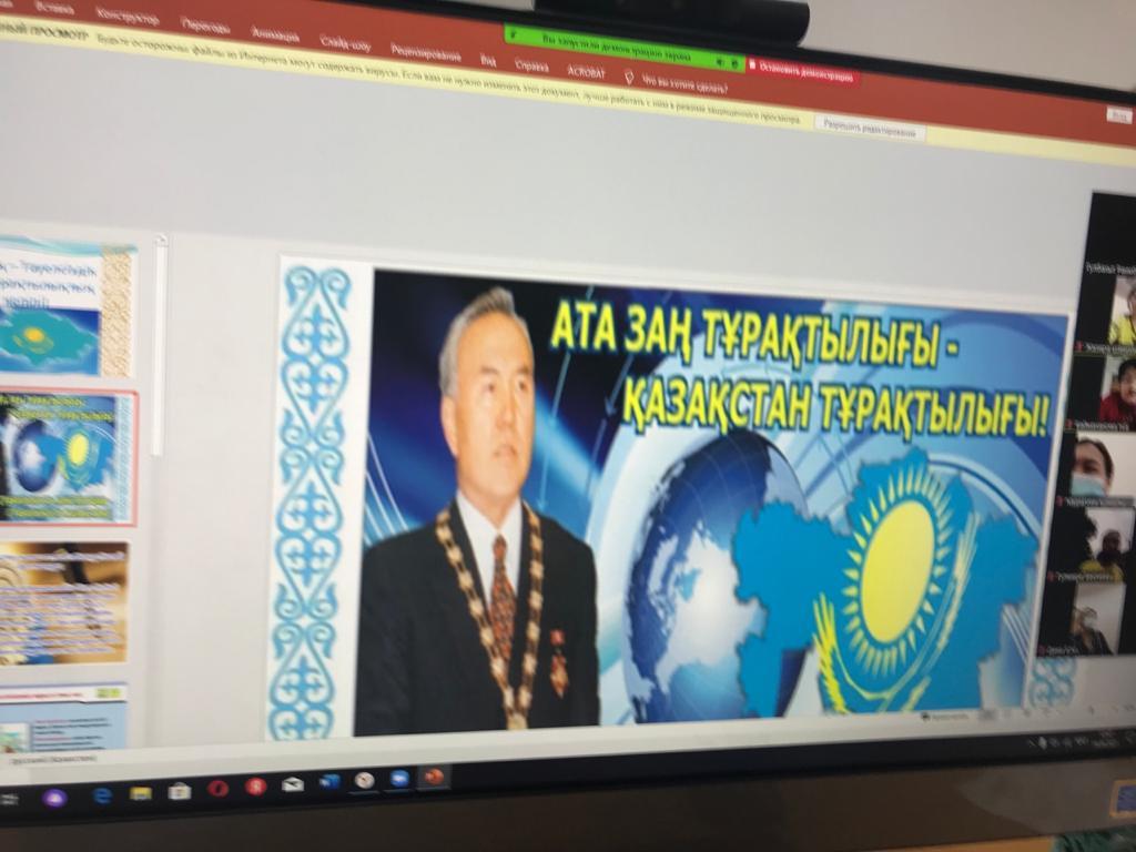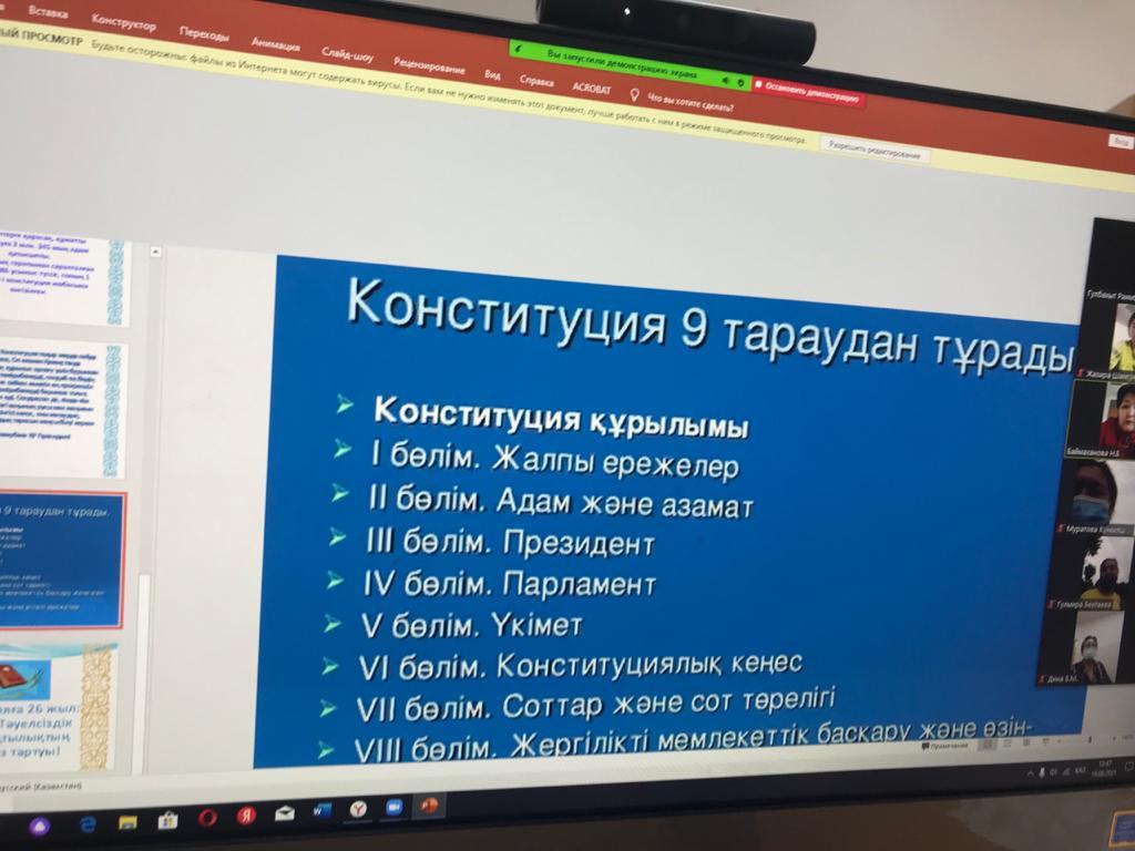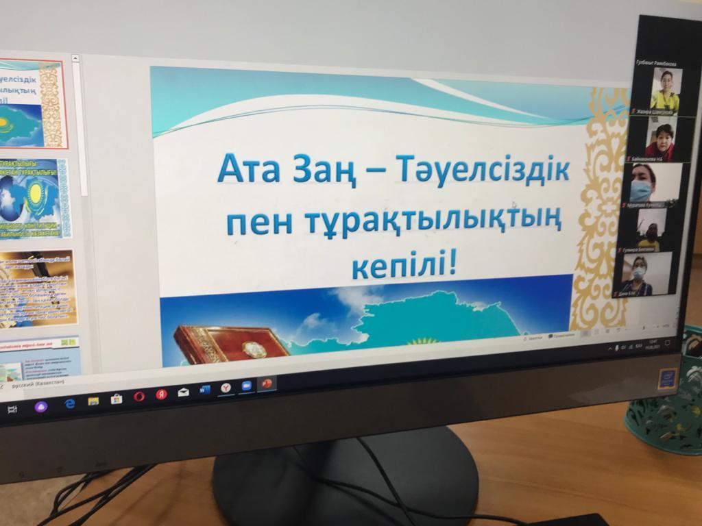 Конституция күніне орай "Ата заң- тәуелсіздік пен тұрақтылық кепілі" атты мұғалімдермен онлайн- конференция өткізілді.Мақсаты:Конституцияны және оның