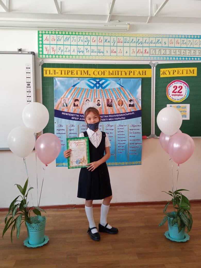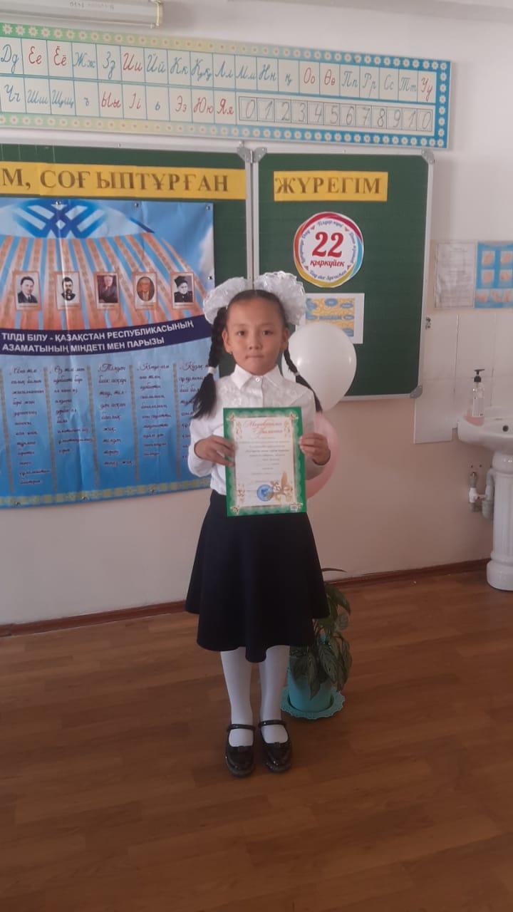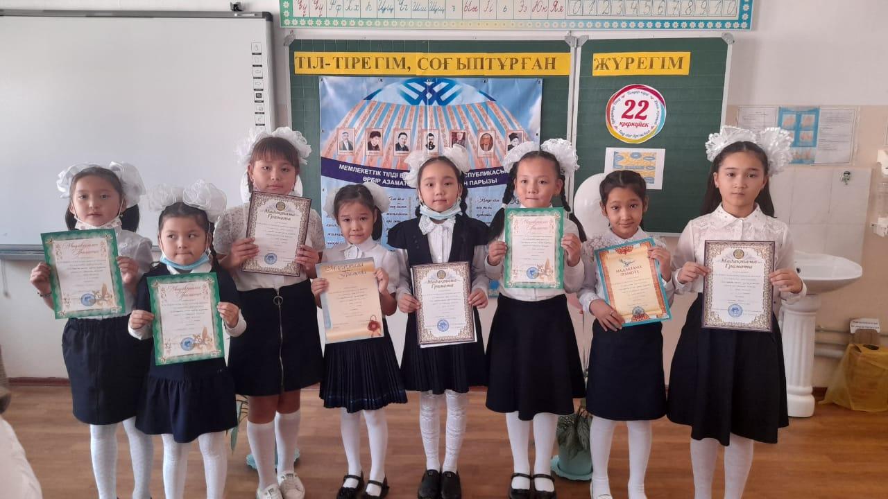 Сайысқа қатысып 1 орын алған 1 «Ә» сынып оқушысы Қадырбек Луина, 2 «А» сынып оқушысы Серікқазы Айша, 2 «Ә» сынып оқушысы Смайл Айсұлтан және 3 «Б» сынып оқушысы Темірбек Раиса марапатталды. Құтты болсын!!!