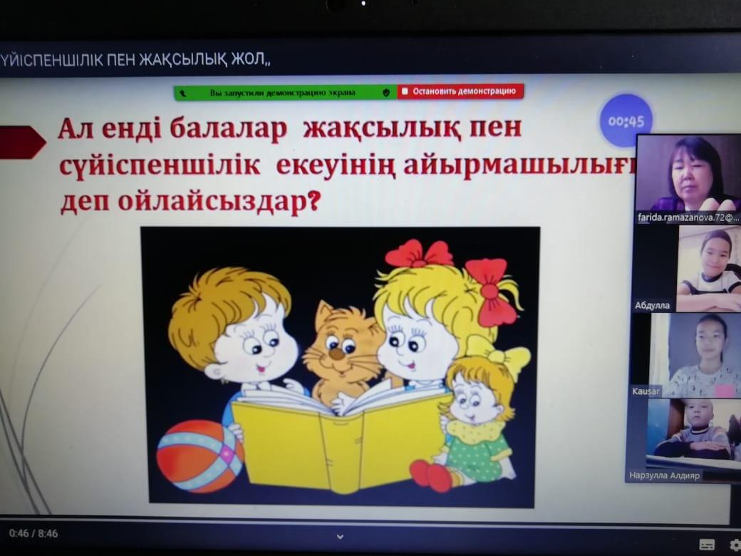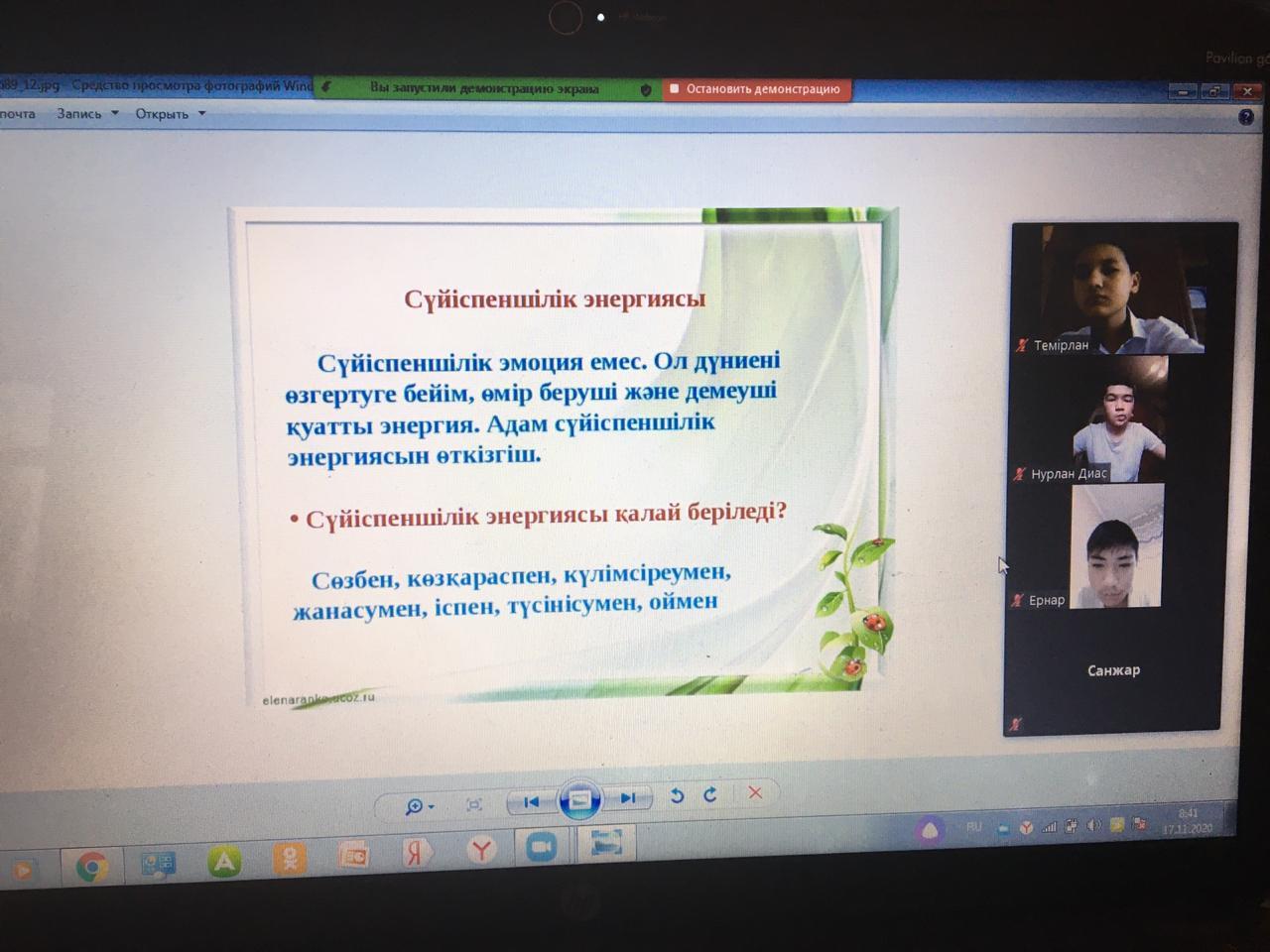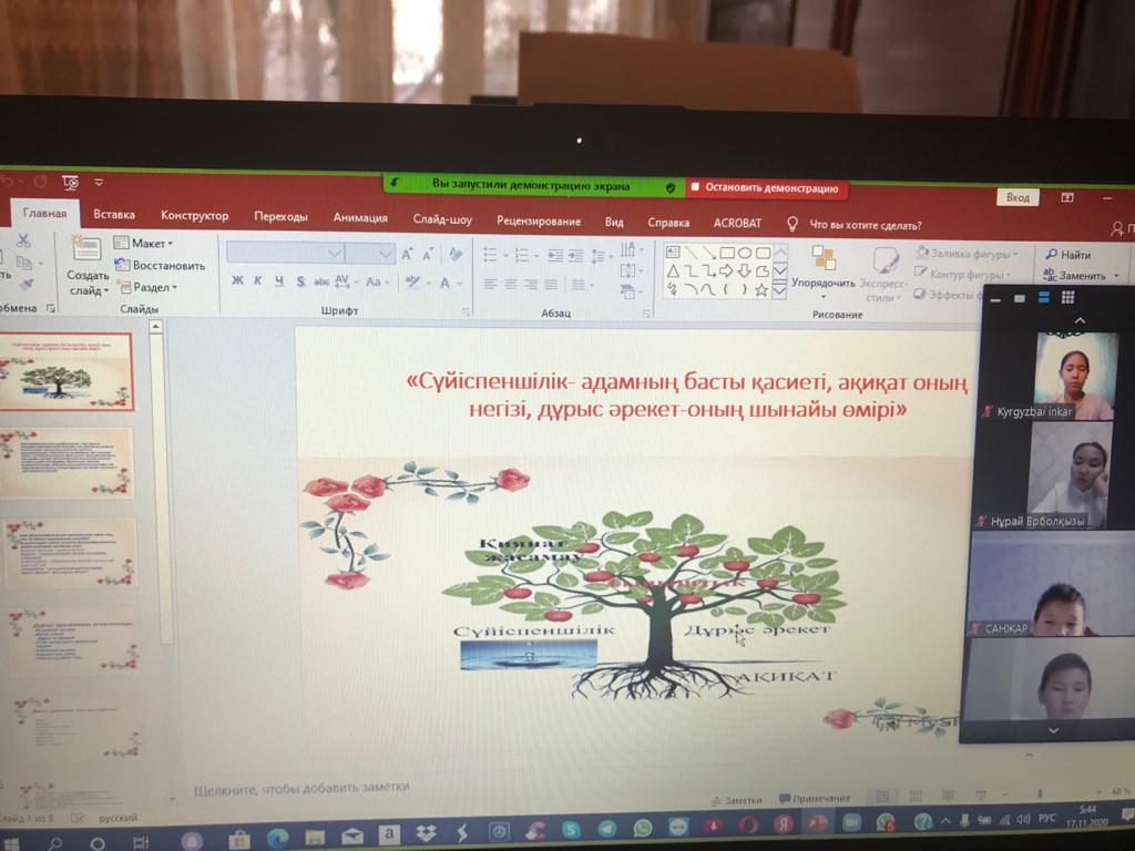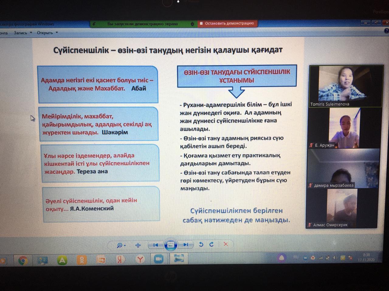 Алматы қаласы Түрксіб ауданы №84 ЖББ мектепте «Жалпыадамзаттық Құндылықтар Күні» аясында жоспарға сәйкес қарашаның 17 күні «Сүйіспеншілік – адамның басты қасиеті, ақиқат оның негізі, дұрыс әрекет – оның шынайы өмірі» атты 1-11 сыныптар арасында сынып сағаты өтті...