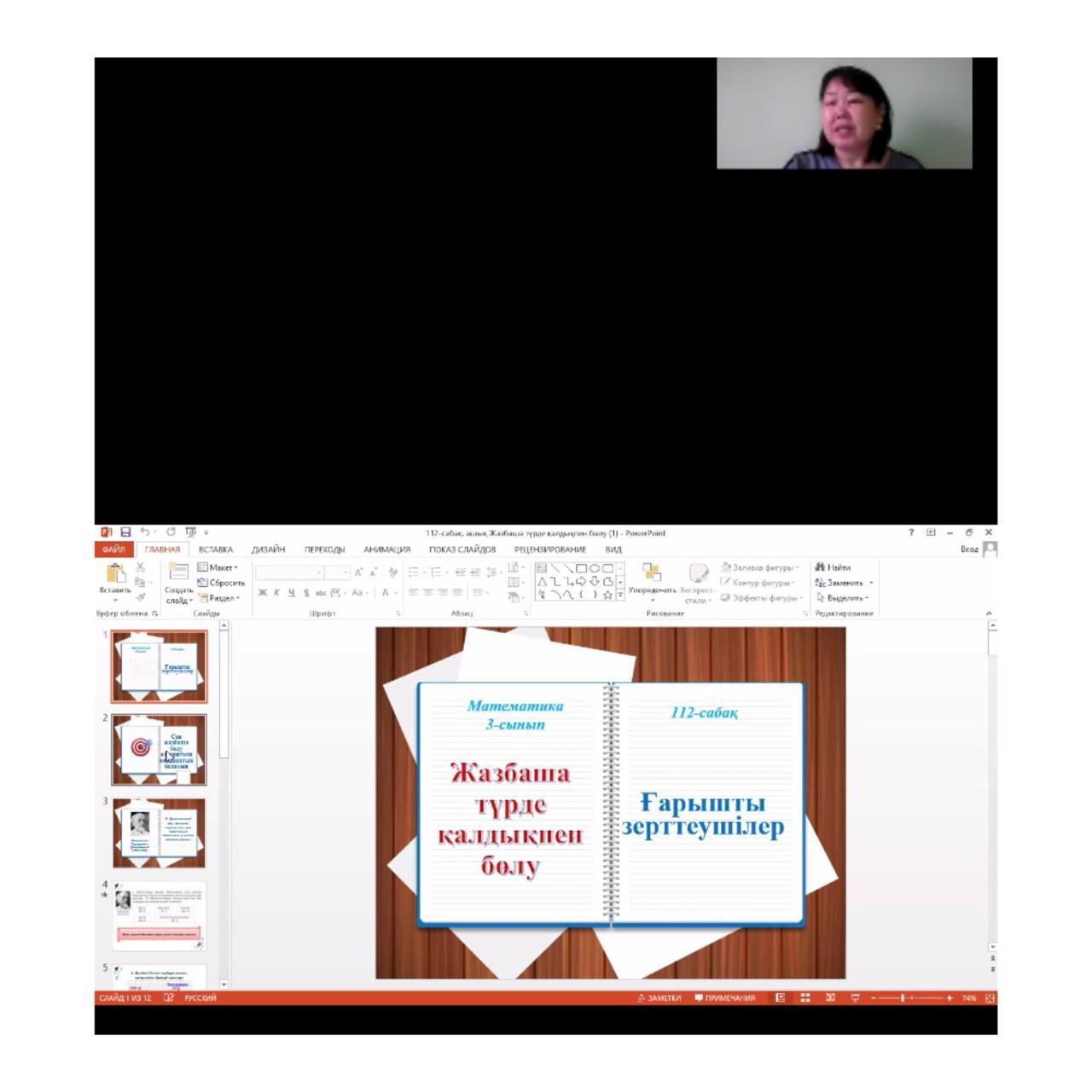 «Білімдіден жоқ әлемде асқан күш, ғылым-білім шоқ жұлдызы бастауыш» атты бастауыш әдістеме бірлестігінің онкүндігі аясында қашықтықтан оқыту жағдайында 3"В" сыныбында математика пәнінен"Жазбаша түрде қалдықпен бөлу "тақырыбында ашық сабақ өтті. Сабақ жоғарғы деңгейде өтті. Оқушылар сабақ барысында белсенділік танытты. Мұғалім мақсатына жетті. Пән мұғалімі: Рамазанова Фарида Базарғалиқызы