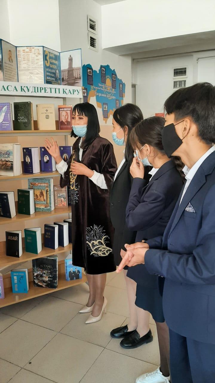 Аудандық " Кітап fest" фестивалі аясында №84 жалпы білім беретін мектептің " Оқуға құштар мектеп" оқырман бұрышында "Кітап-аса құдіретті қару" тақырыбында көрме ұйымдастырылды.Көрмені қазақ тілі пәні мұғалімі Б.Б. Сабирова және мектеп кітапханашысы И.В.Калмыкова ұйымдастырды. Көрмеге мектебіміздің 9 сынып оқушылары қатысып Тәуелсіздіктің 30 жылдығы аясында 30 кітап оқу тапсырмасын алды.