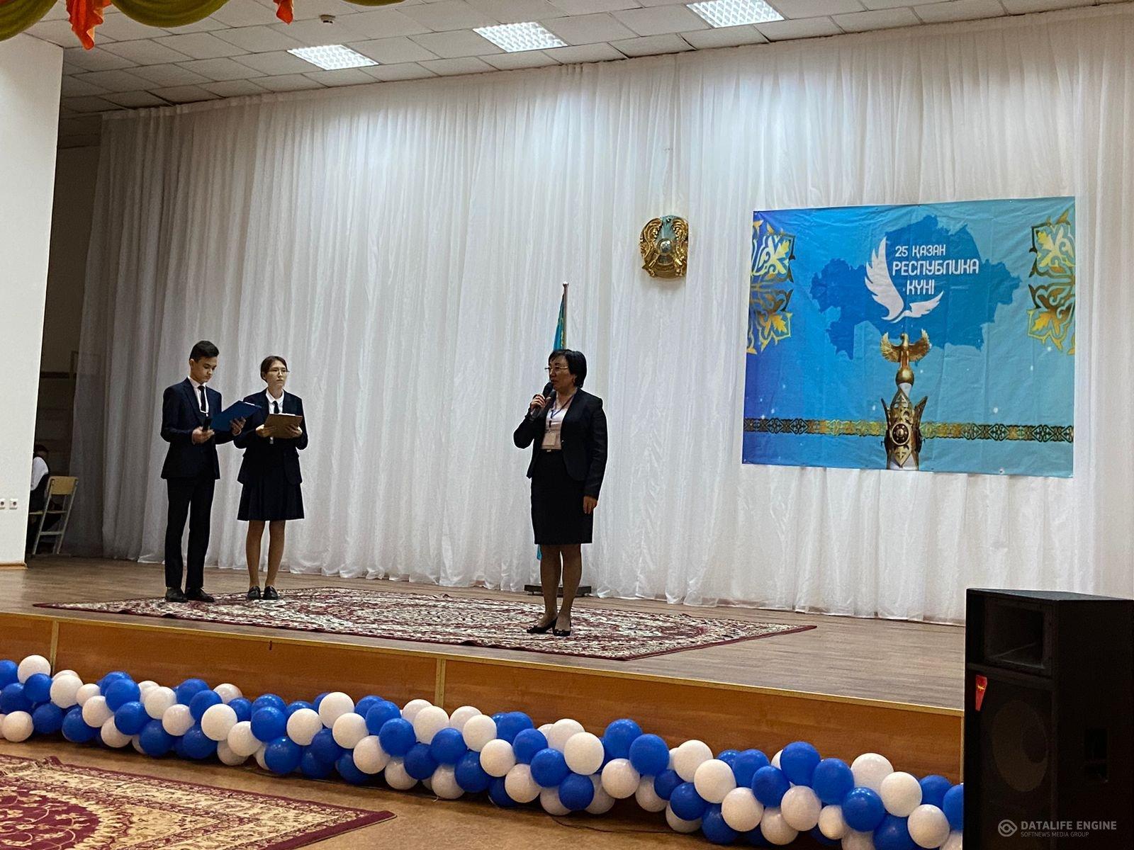25 қазан - Республика күніне орай "Қыран елім - Қазақстаным!" тақырыбында 5 "б", 6 "ә" сыныптарының ұйымдастыруымен салтанатты іс-шара өткізілді. Іс-шараның мақсаты: оқушыларды өз Отанын сүюге, туған тіліне, еліне деген деген сүйіспеншілігн арттыра отырып, патриоттық сезімге тәрбиелеу. Салтанатты іс-шараны мектеп директоры Молдасанова Союзкан Шорманқызы құттықтау сөзімен ашты. 1990 жылдан бастап қазанның 25-сі – Республика күні болып белгіленген еді. Арада аздаған үзілістермен 2022 жылдан бастап 25 қазан қайтадан Республика күні ретінде аталатын болды. Салтанатты іс-шара күй атасы Құрманғазының "Балбырауын" күйімен жалғасты. Елімізге арналған патриоттық өлеңдерде оқылды. Іс-шара тамаша әнмен толығып, мың бұралған бишілердің биімен әрленді.