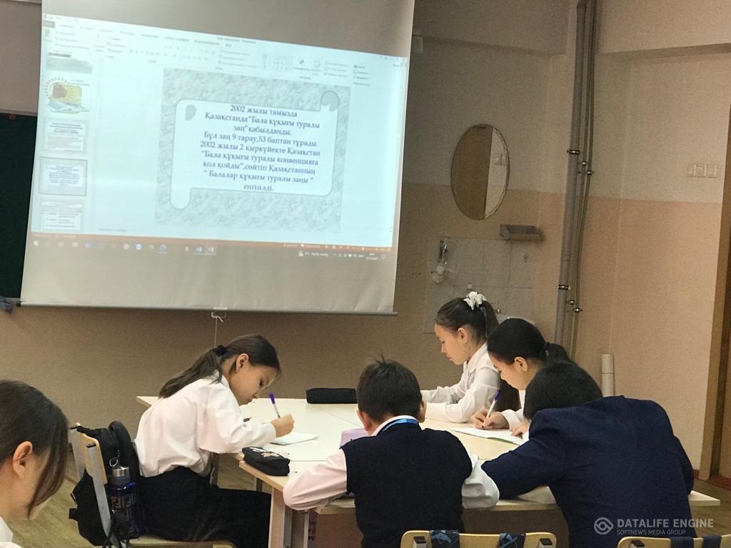15 ноября учащиеся 1-11 классов провели классное занятие на тему «Права и обязанности детей в Республике Казахстан» в соответствии с планом декады «Права ребенка-Права человека» Турксибского района города Алматы.
