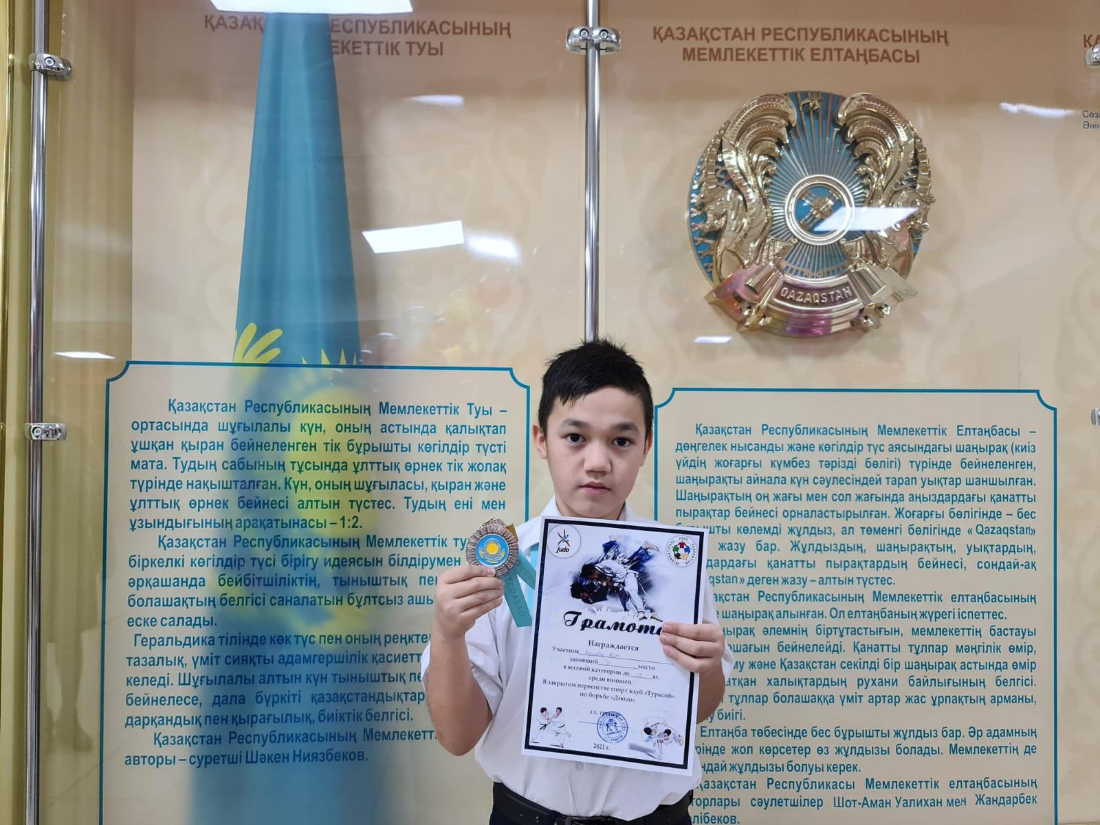 38 кг дейінгі спортшылар арасында мектебіміздің 6 "в" сынып оқушысы Әділбек Али дзюдодан Түрксіб аудандық жабық біріншілігінде 3-орынға ие болды. Алар асуы мен бағындырар белестері көп болсын!
