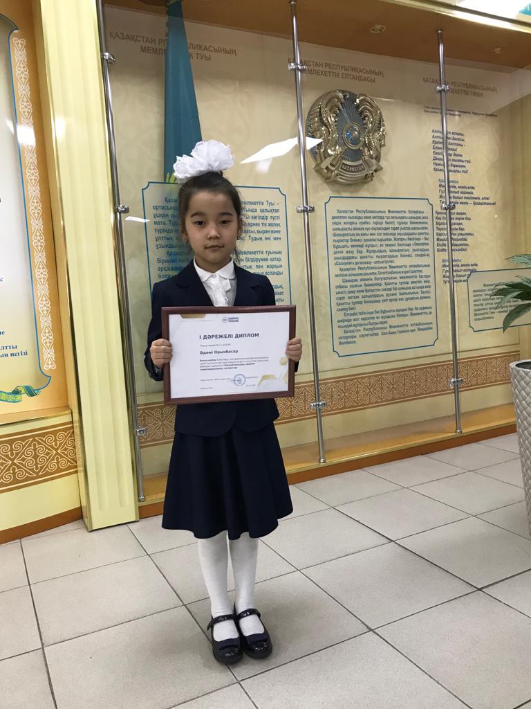 Daryn online білім беру платформасында функционалдық сауаттылықты арттыру мақсатында 1-сыныптар арасында ұйымдастырылған I Республикалық “AIQYN” олимпиадасына 1”А” сынып оқушысы Орынбасар Адемі қатысып,жүлделі I дәрежелі дипломға ие болды.