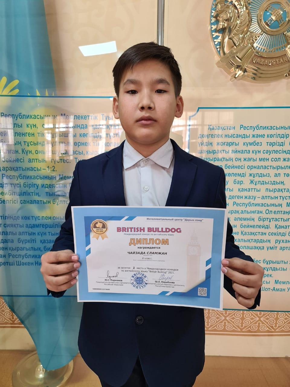 Алматы қаласы Түрксіб ауданы №84 жалпы білім беретін мектептің 6 "в" сынып оқушысы Чайзада Сламжан халықаралық "British Bulldog" атты ағылшын тілінен