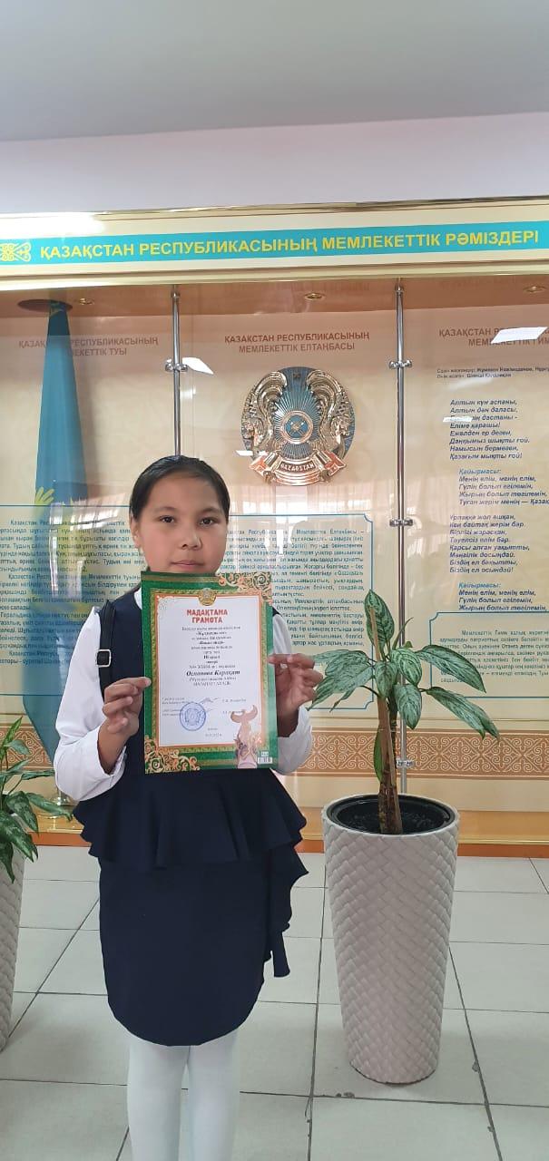 Балалар жылы аясында өткізілген "ЖҰЛДЫЗДЫ СӘТ" аудандық байқауының "вокал өнері" номинациясы бойынша орта топта №84 ЖББМ 5 "Ә" сынып оқушысы Оспанова
