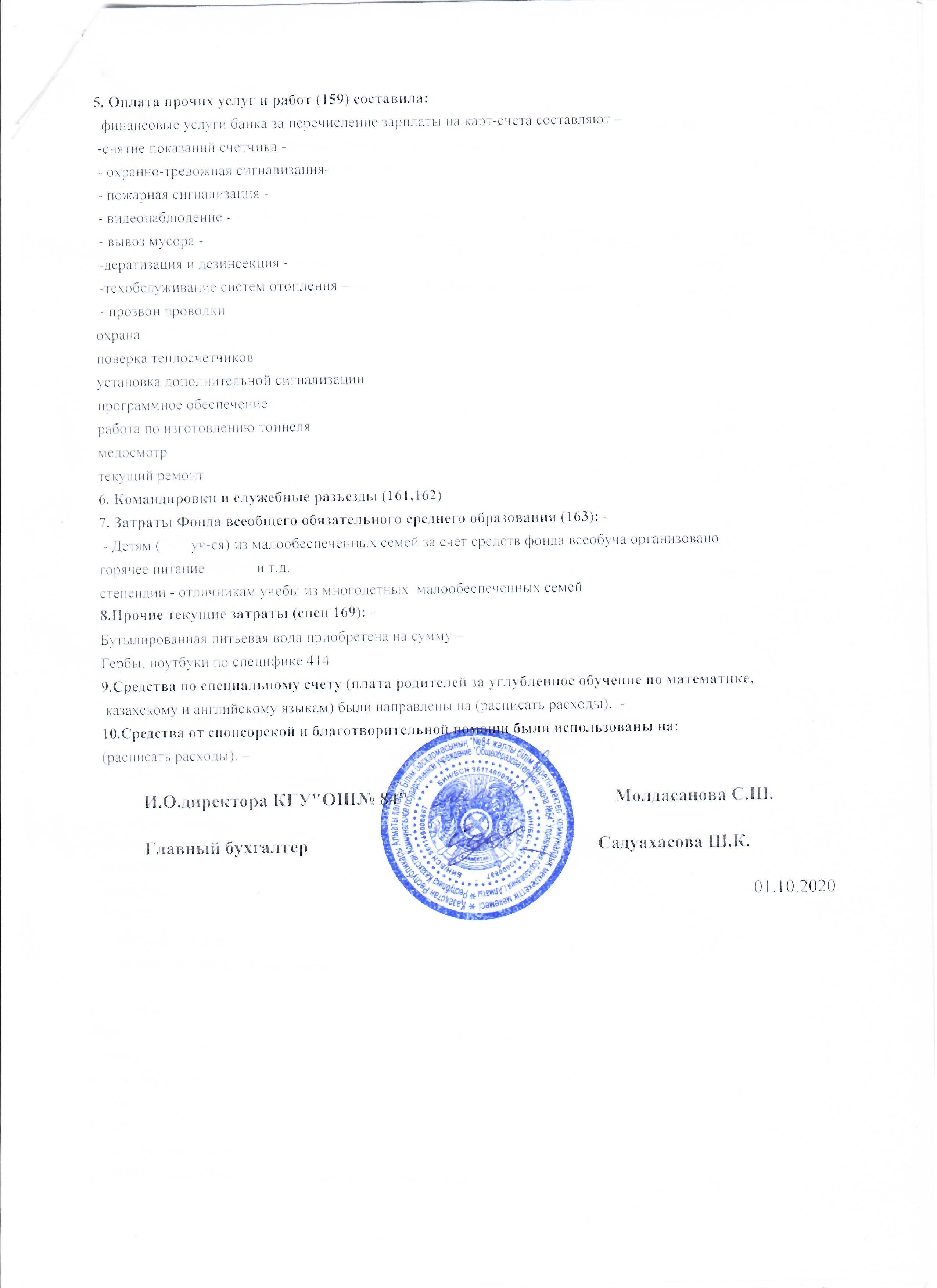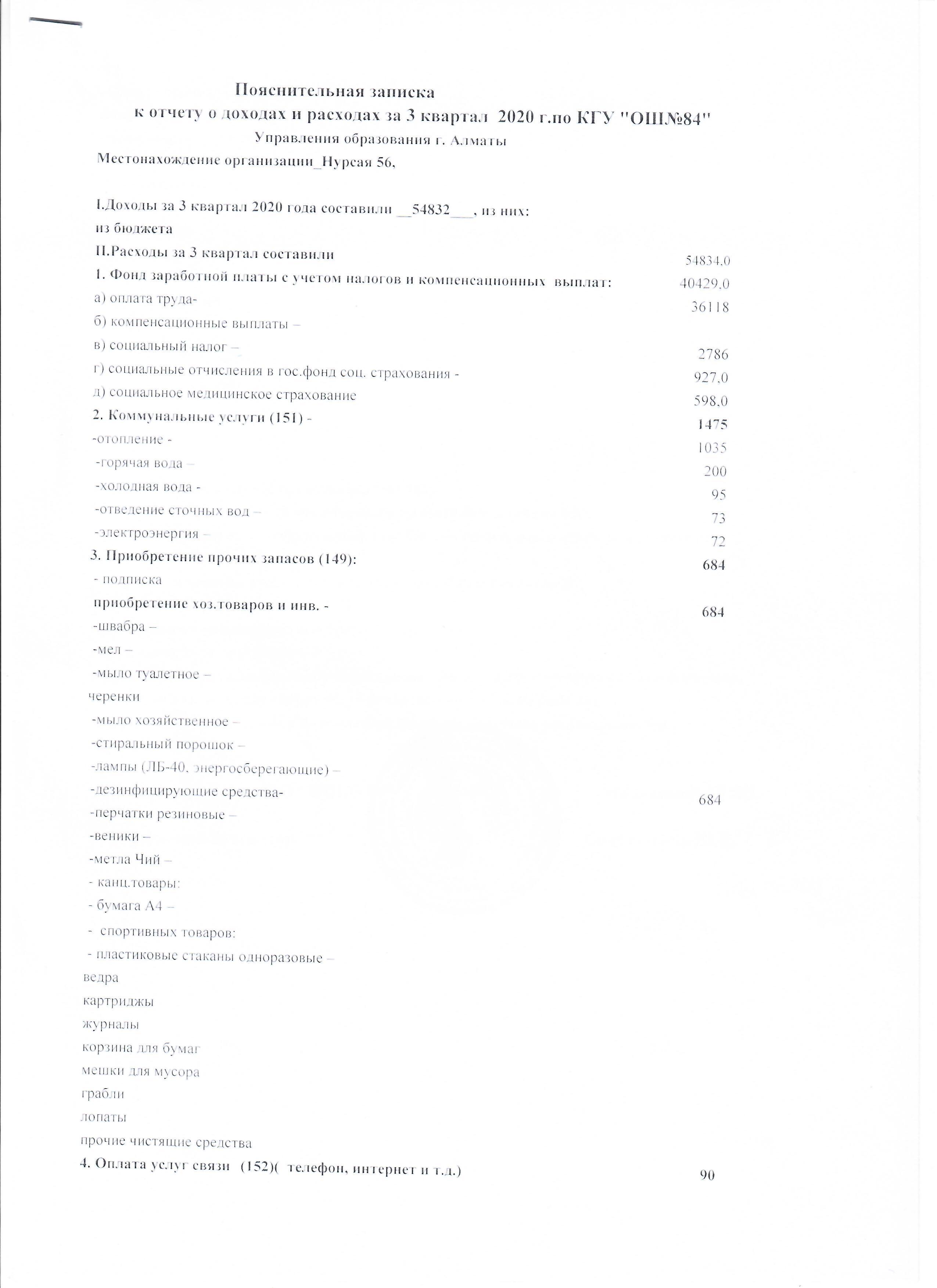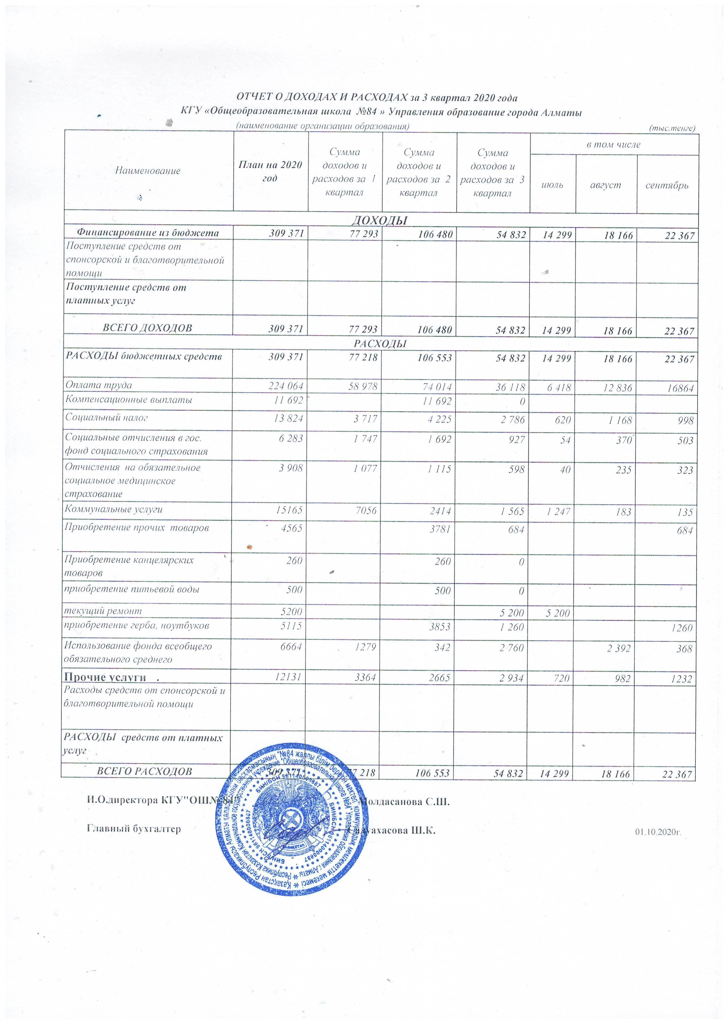 01 октябрь 2020 0 1 2 3 4 5 Отчет о доходах и расходах за 3 квартал 2020 года КГУ ОШ №84 Отчет о доходах и расходах за 3 квартал 2020 года КГУ ОШ №84