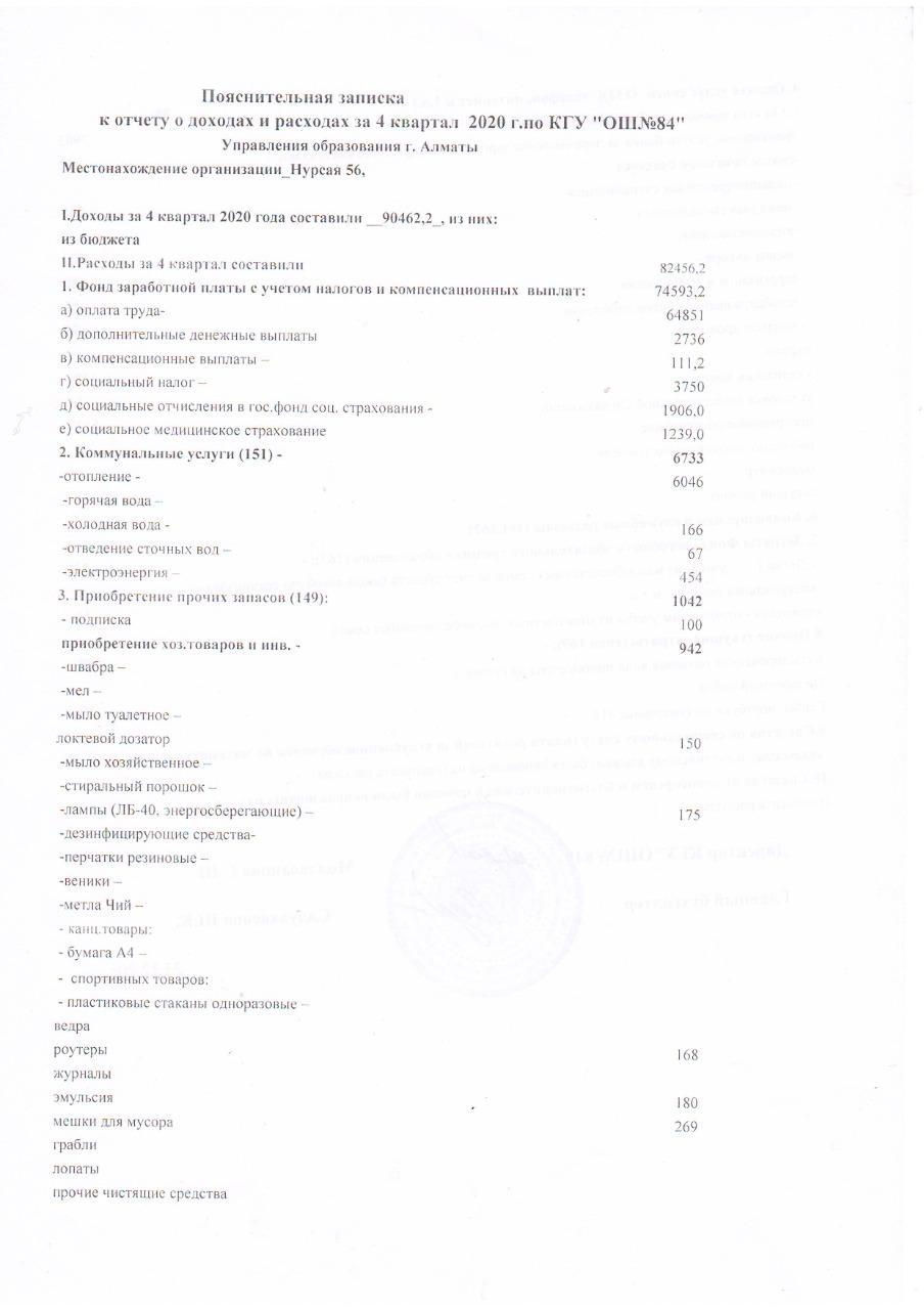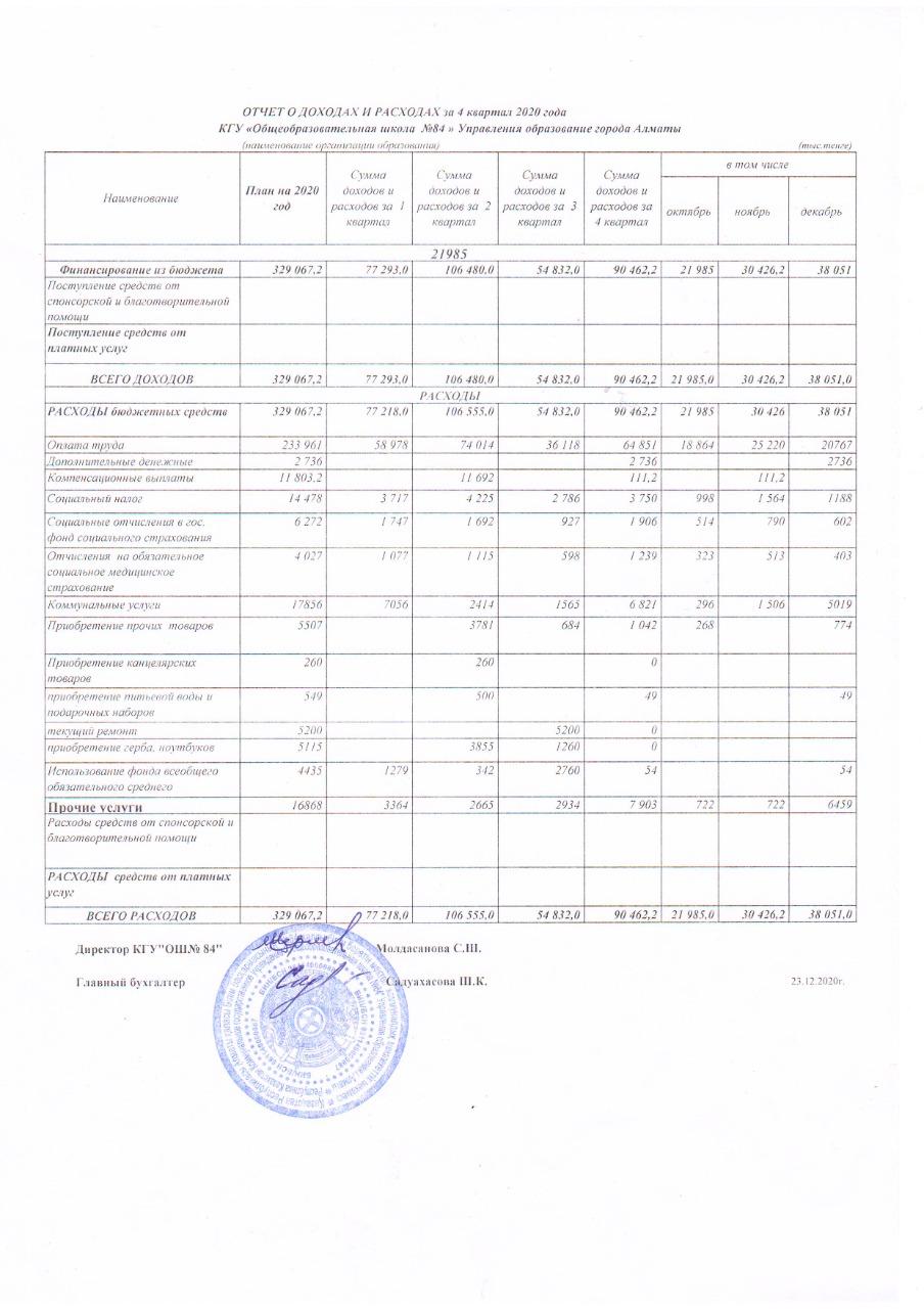 23 декабрь 2020 0 1 2 3 4 5 Отчет о доходах и расходах за 4 квартал 2020 года КГУ ОШ №84 Отчет о доходах и расходах за 4 квартал 2020 года КГУ ОШ №84