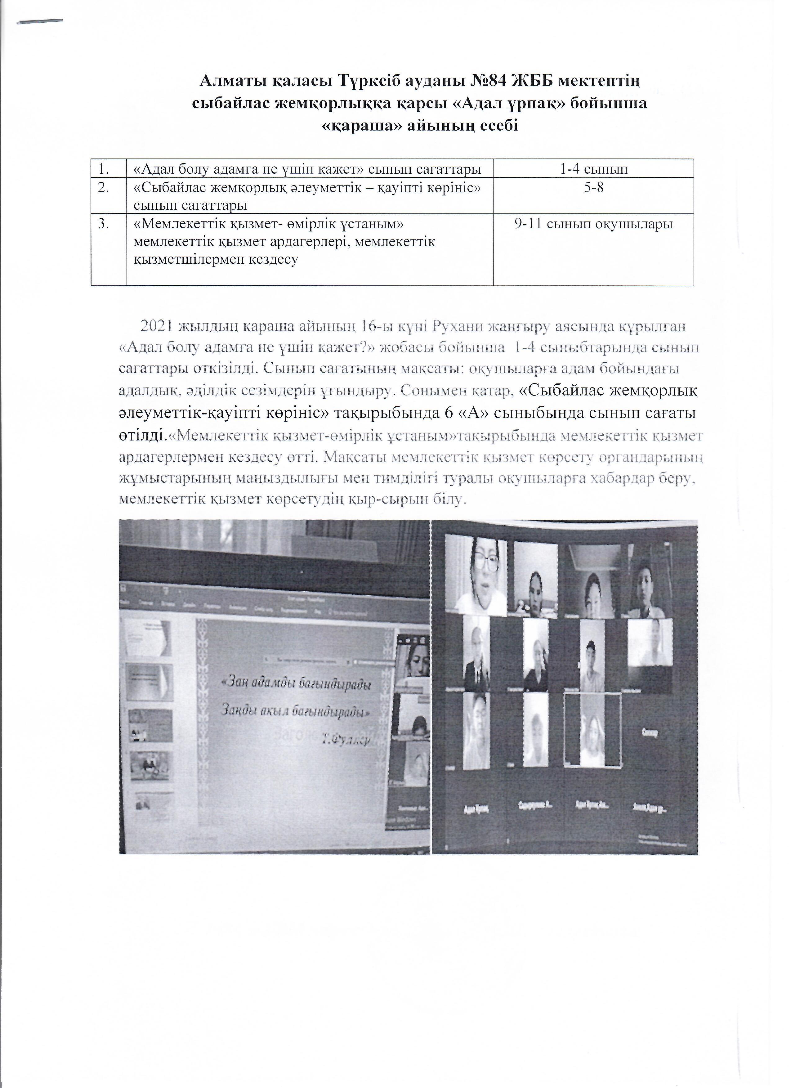 17 февраль 2022 0 1 2 3 4 5 Алматы қаласы Түрксіб ауданы №84 ЖББМ "Адал ұрпақ" ерікті клубының қараша айының ЕСЕБІ Алматы қаласы Түрксіб ауданы №84 ЖББМ "Адал ұрпақ" ерікті клубының қараша айының ЕСЕБІ