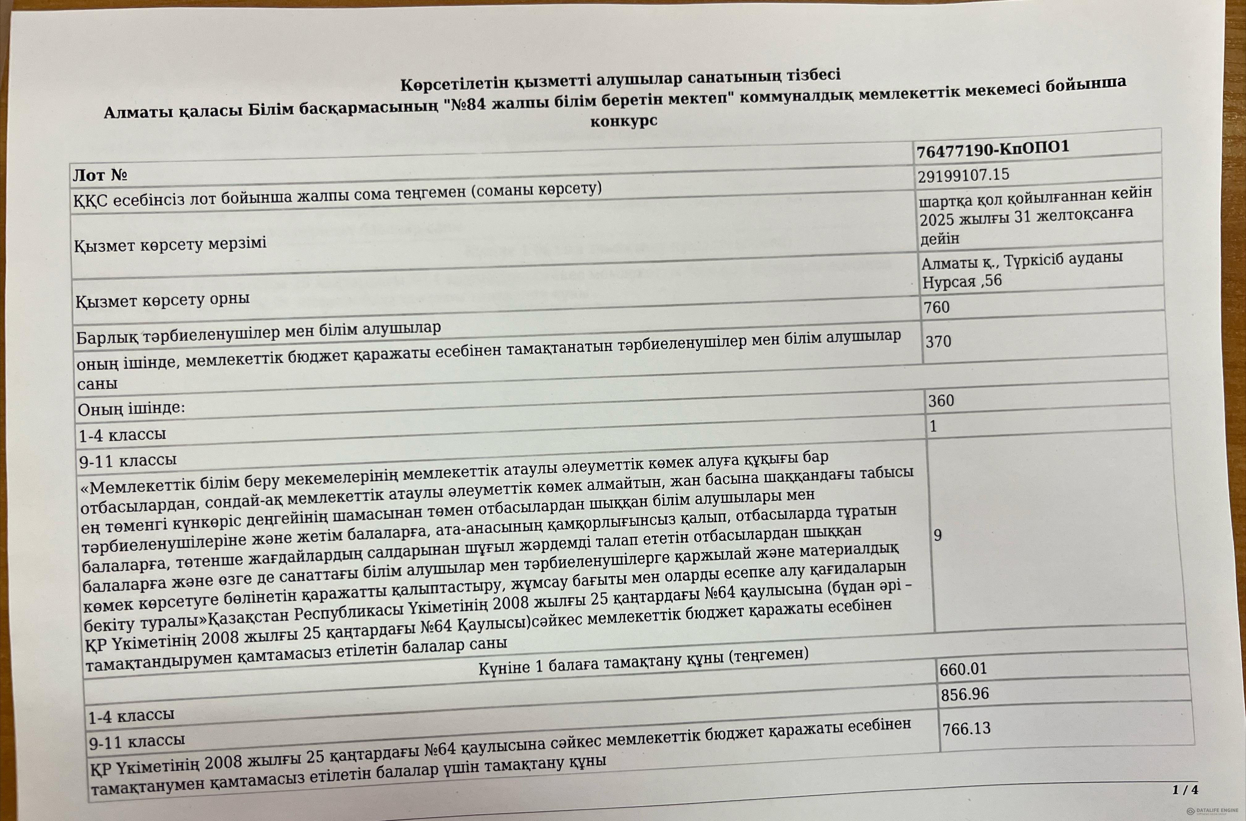 1Конкурсная документация по выбору поставщика услуги питания КГУ ОШ №84