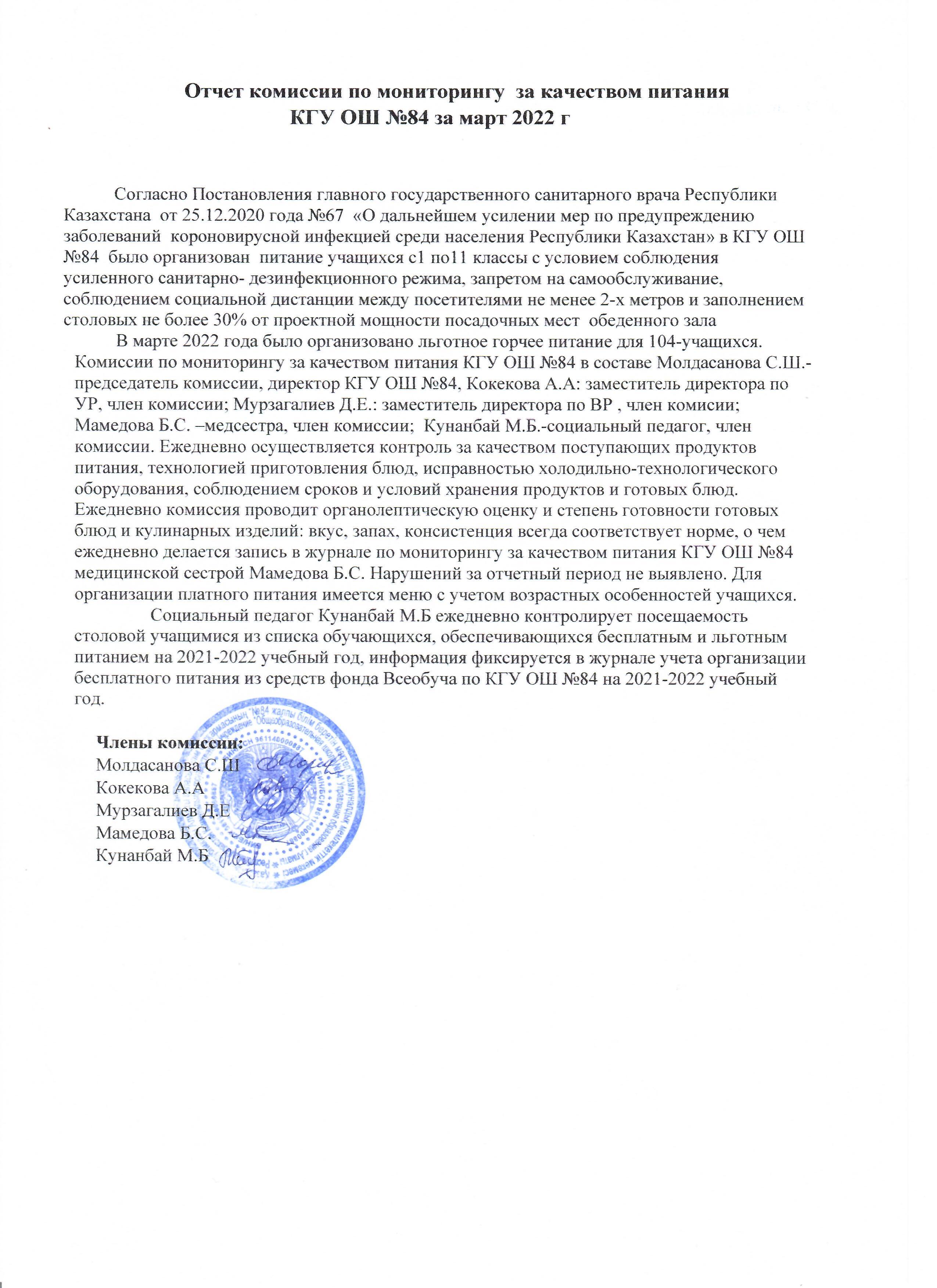 29 март 2022 0 1 2 3 4 5 Отчет по мониторингу за качеством питания за март месяц Отчет по мониторингу за качеством питания за март месяц