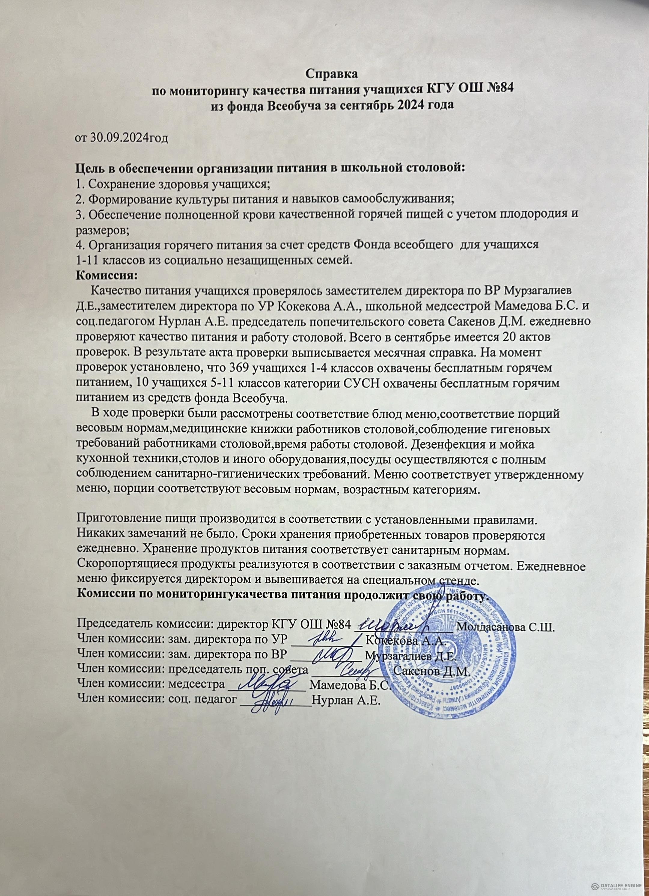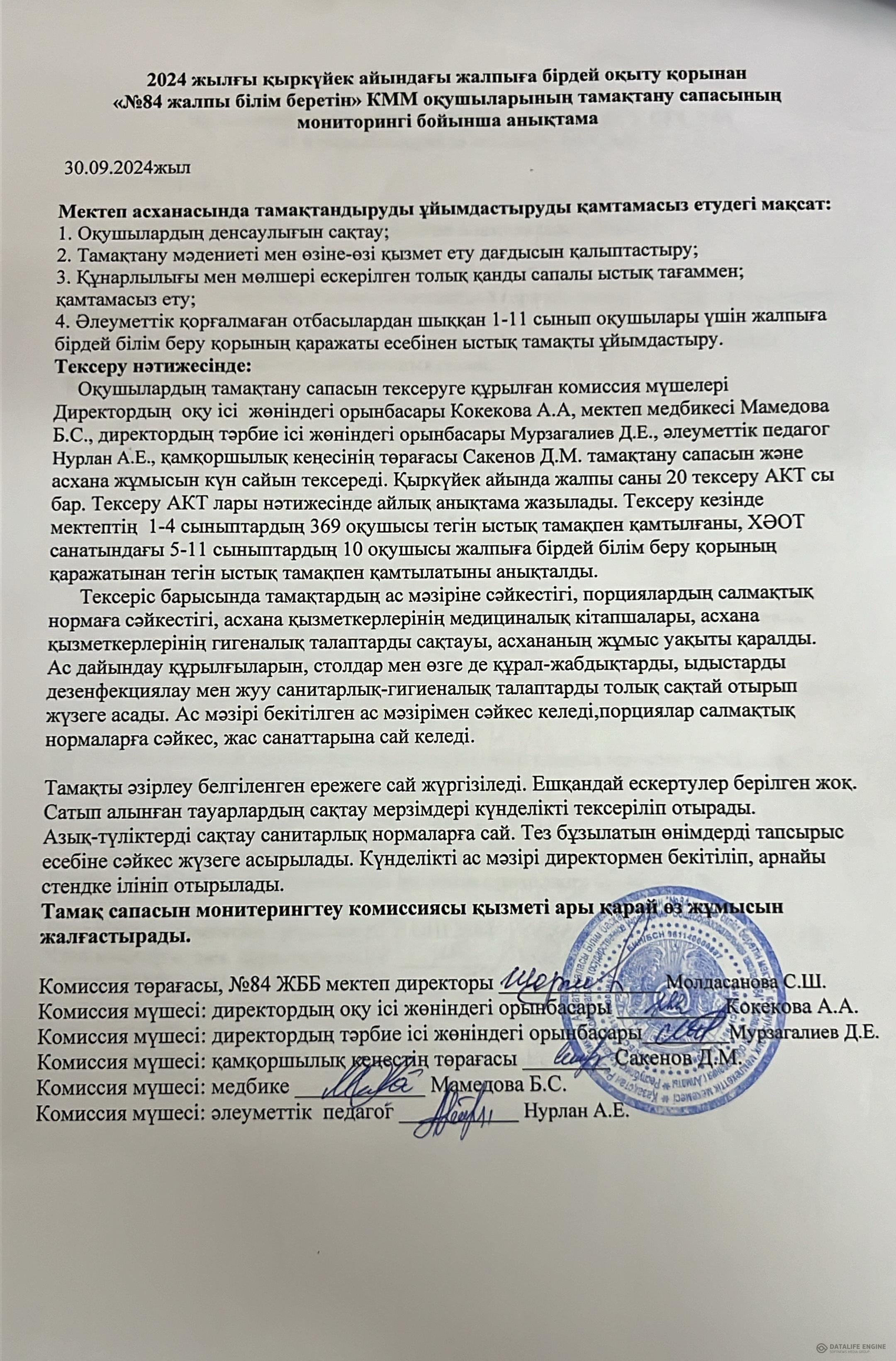30 сентябрь 2024 0 1 2 3 4 5 Қыркүйек айы бойынша тамақтану есебі Қыркүйек айы бойынша тамақтану есебі