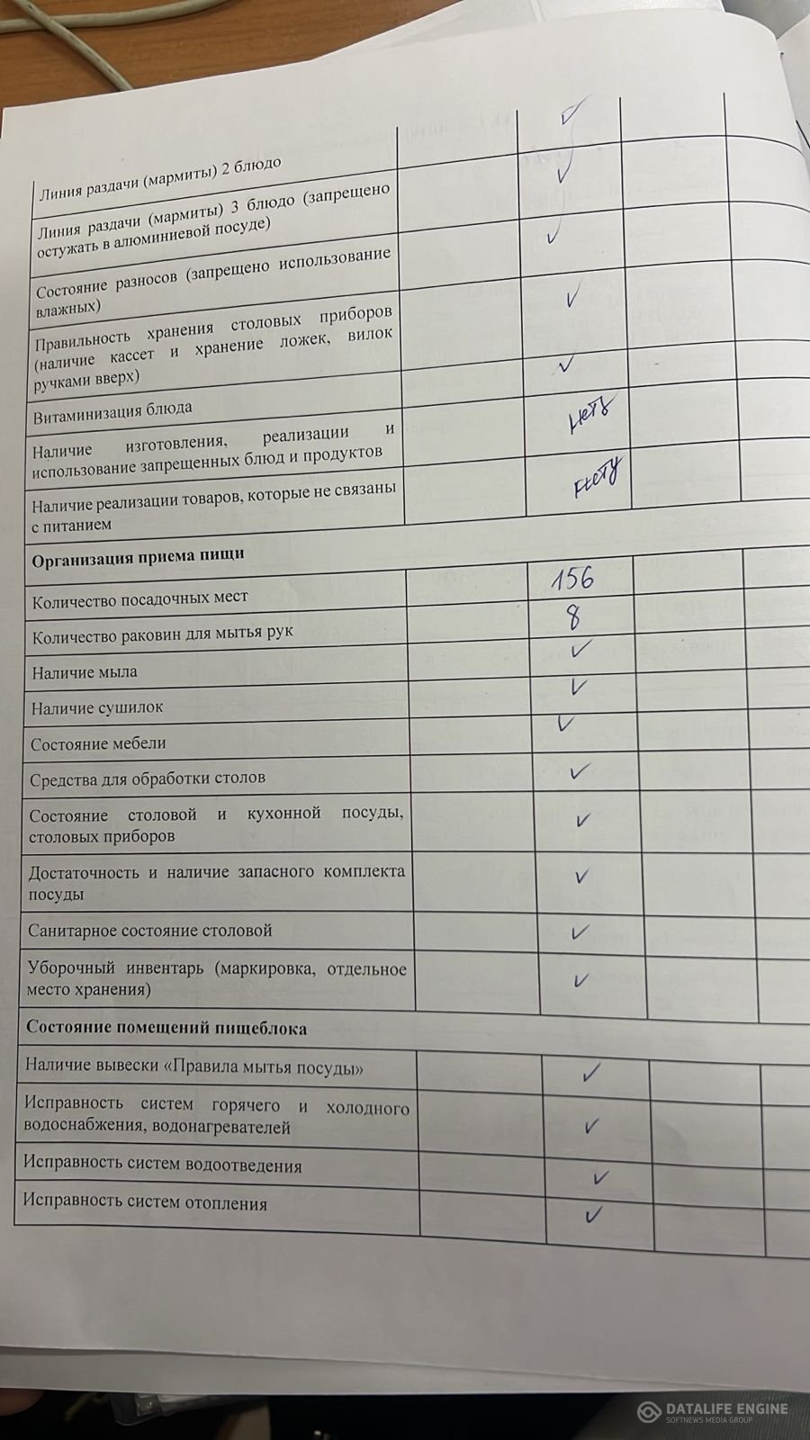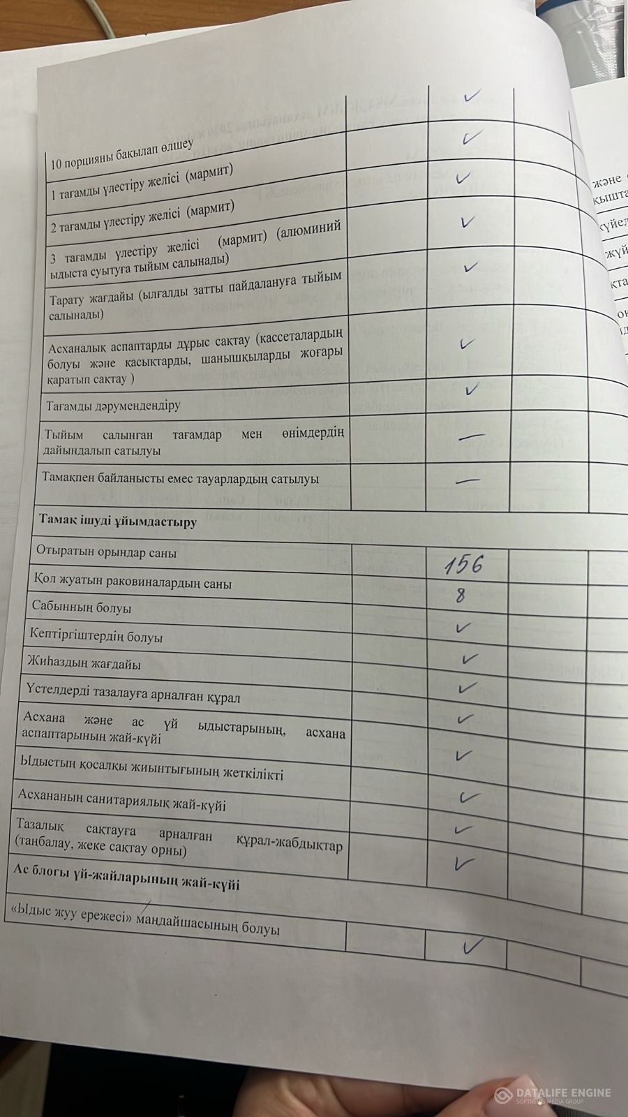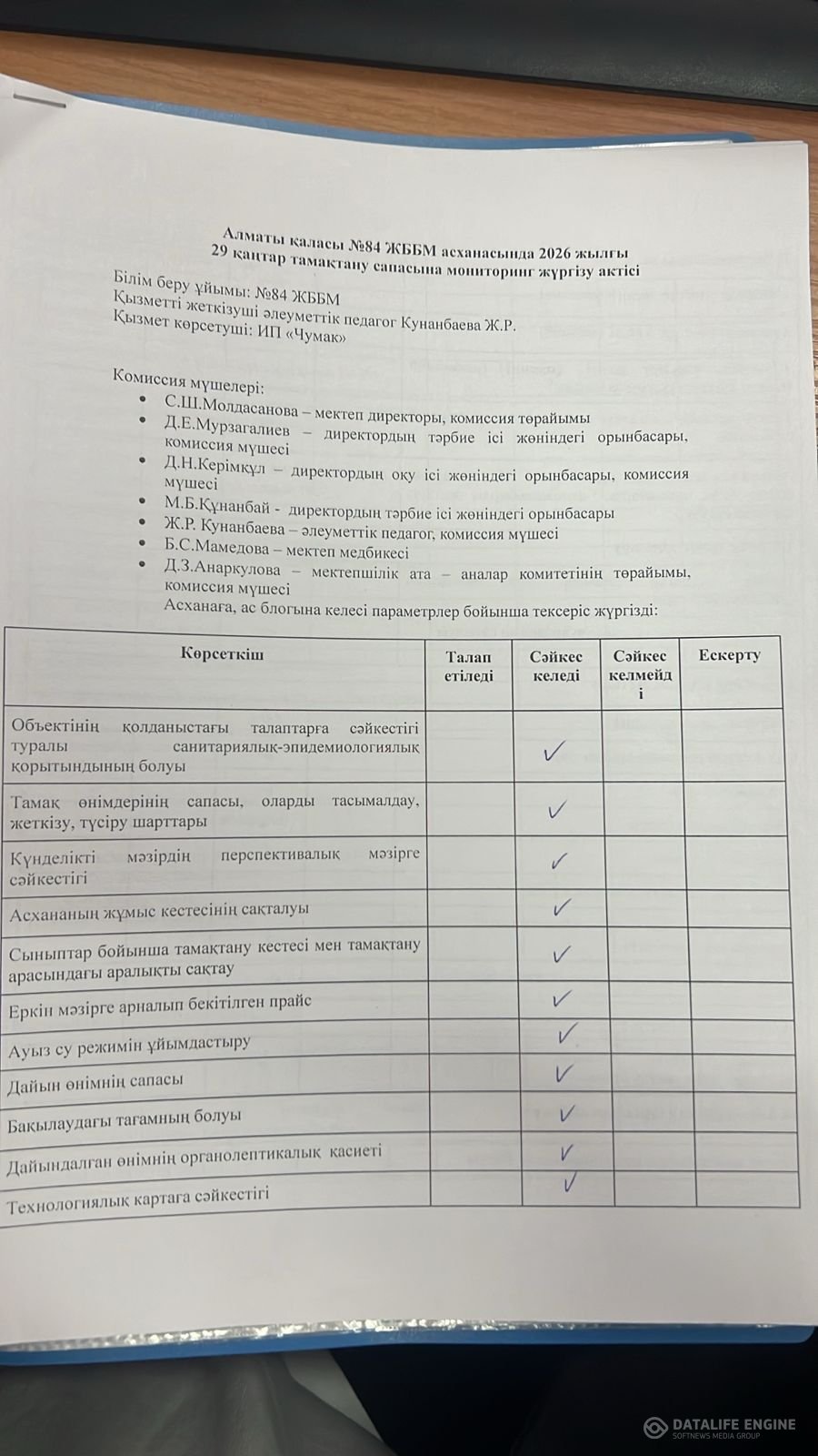 Тамақтану сапасына мониторинг жүргізу актісі