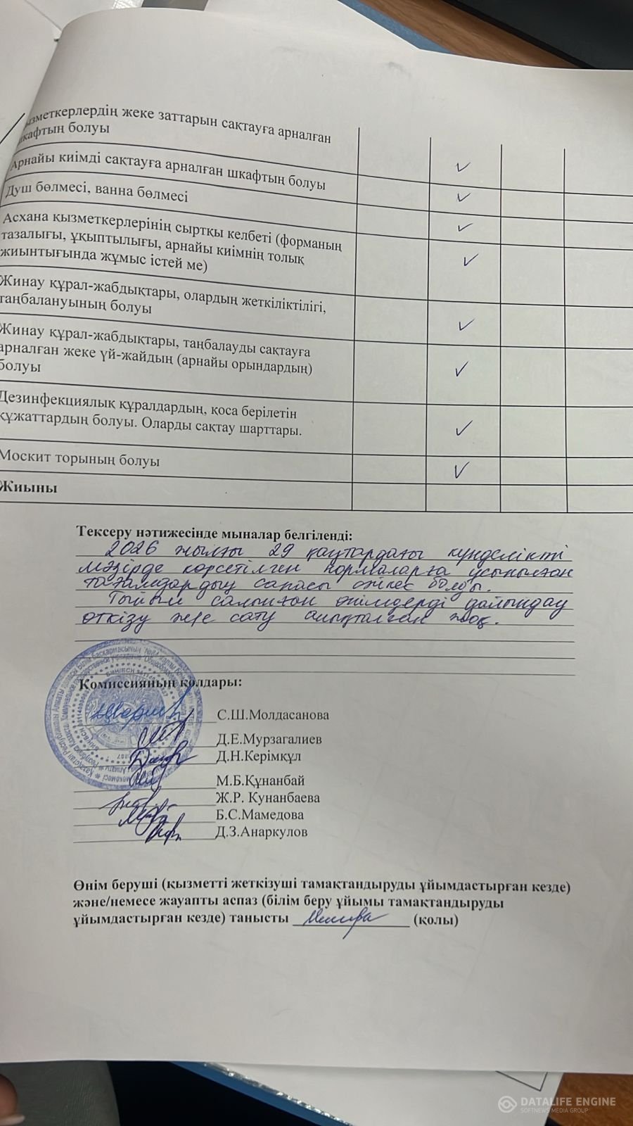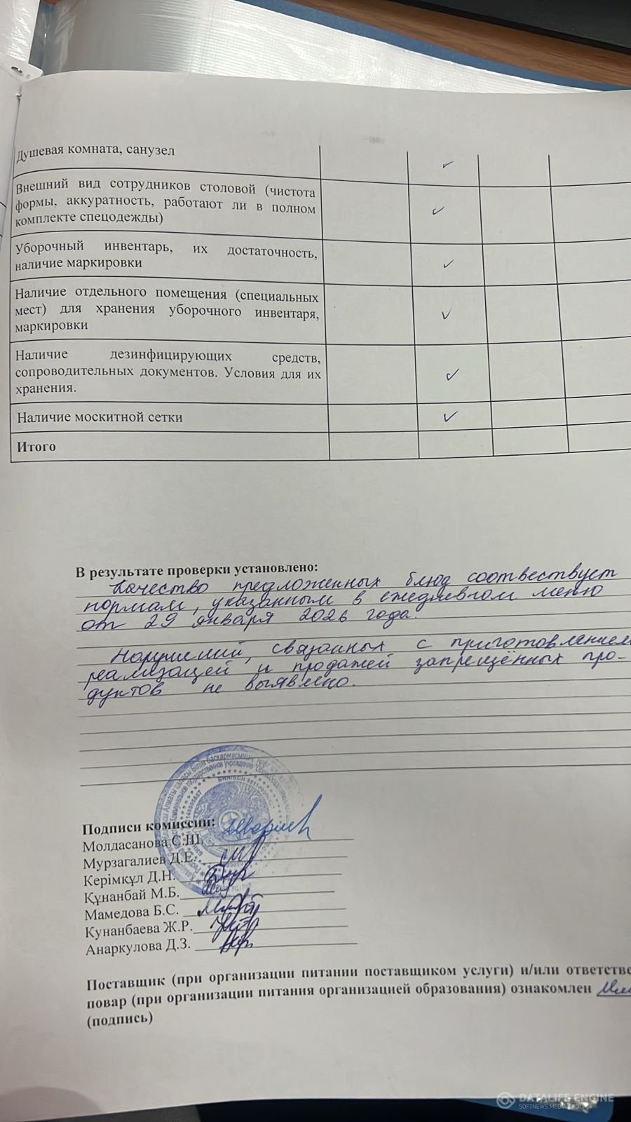 » Тамақтану сапасына мониторинг жүргізу актісі 29.01.2026 ж.