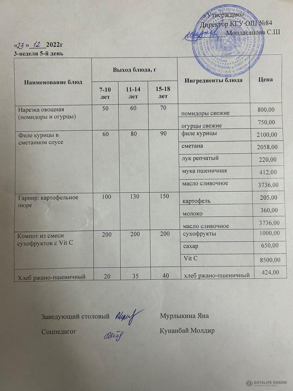 23 декабрь 2022 0 1 2 3 4 5 Ас мәзірі 23.12 3-апта,5-күн Меню 3-й неделя,5-й день Ас мәзірі 23.12 3-апта,5-күн Меню 3-й неделя,5-й день