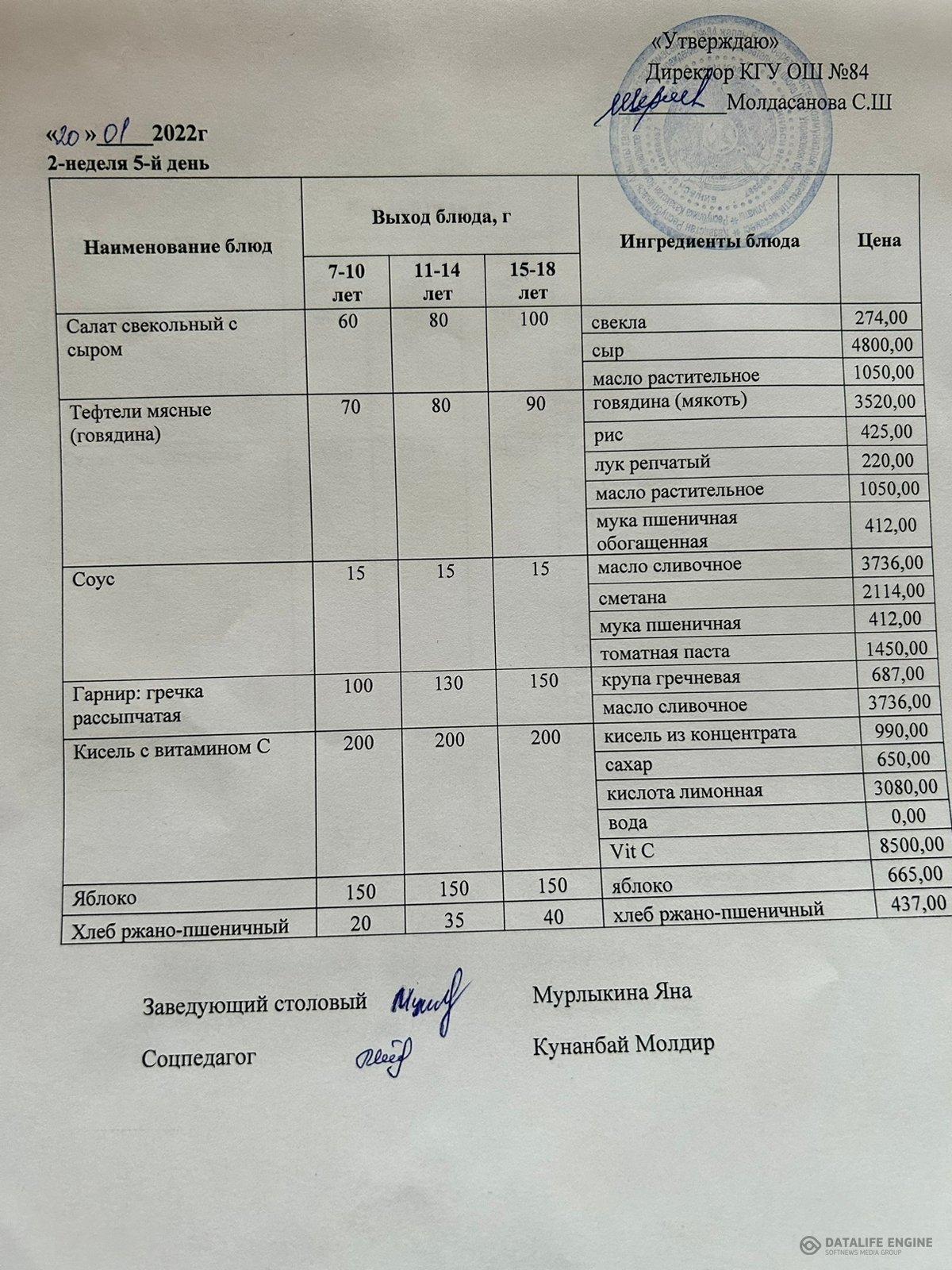 20 январь 2023 0 1 2 3 4 5 Ас мәзірі 20.01 2-апта,5-күн Меню 2-й неделя,5-й день Ас мәзірі 20.01 2-апта,5-күн Меню 2-й неделя,5-й день