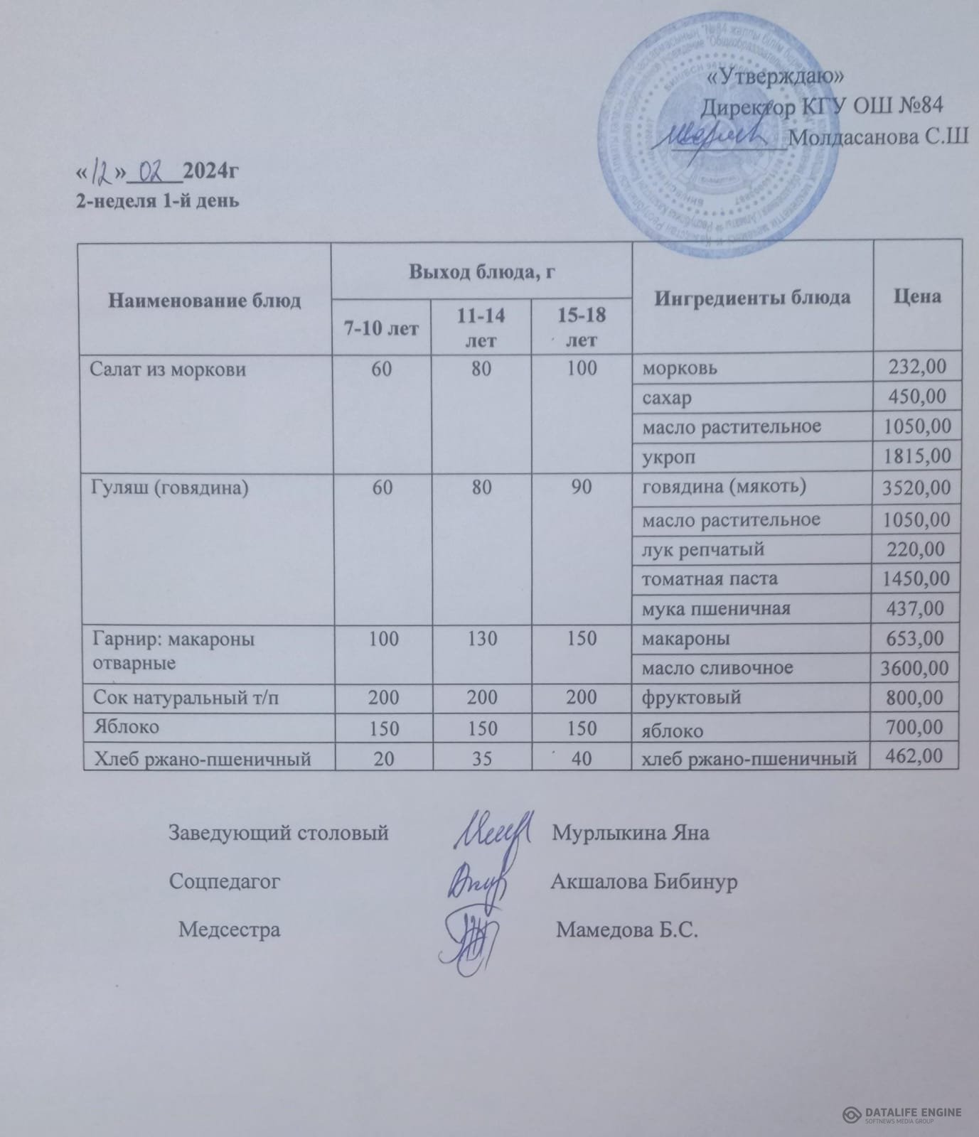 12 февраль 2024 0 1 2 3 4 5 Ас мәзірі 12.02.2024. Ас мәзірі 12.02.2024. 2 апта 1 күнМеню 12.02.2024. 2 неделя 1 день