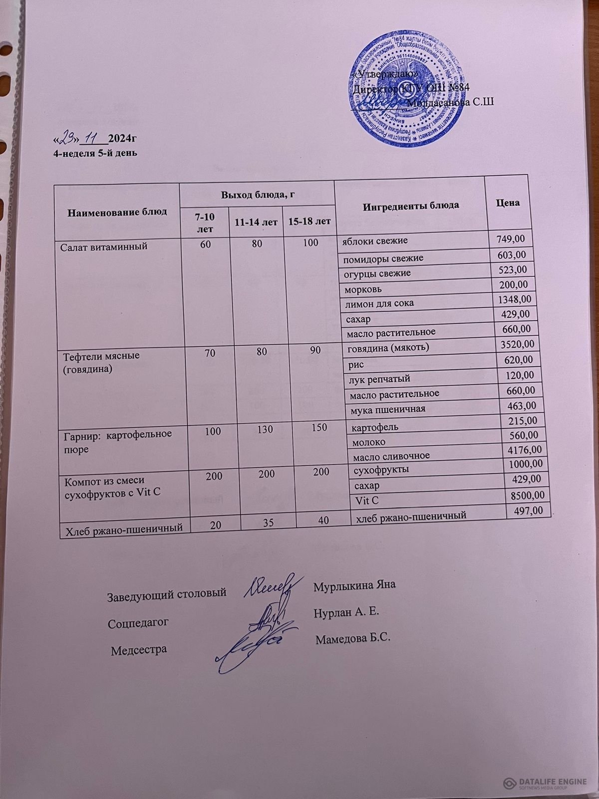 Ас мәзірі 08.11.2024 оқу жылы