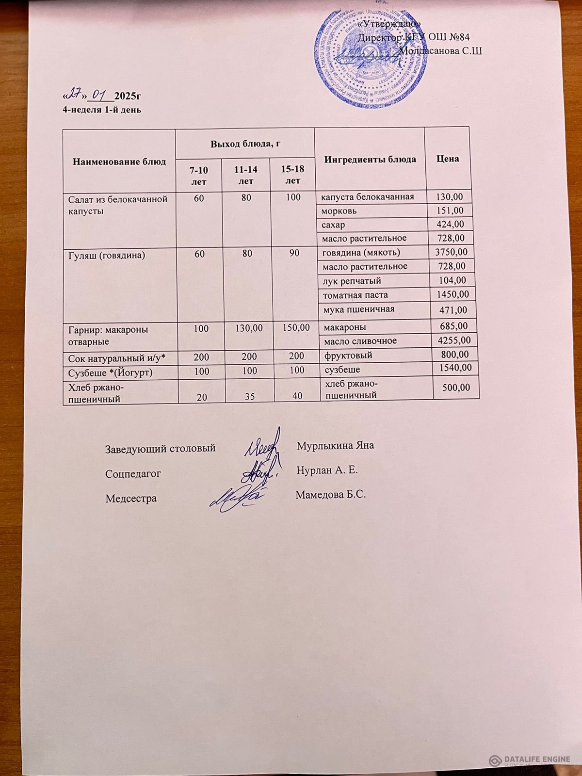 » Ас мәзірі 27.01.2025 жыл
