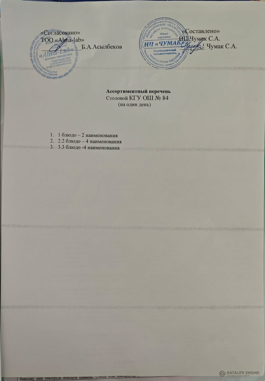 » Ассортиментный переченьвыпускаемой продукции в столовой 2024