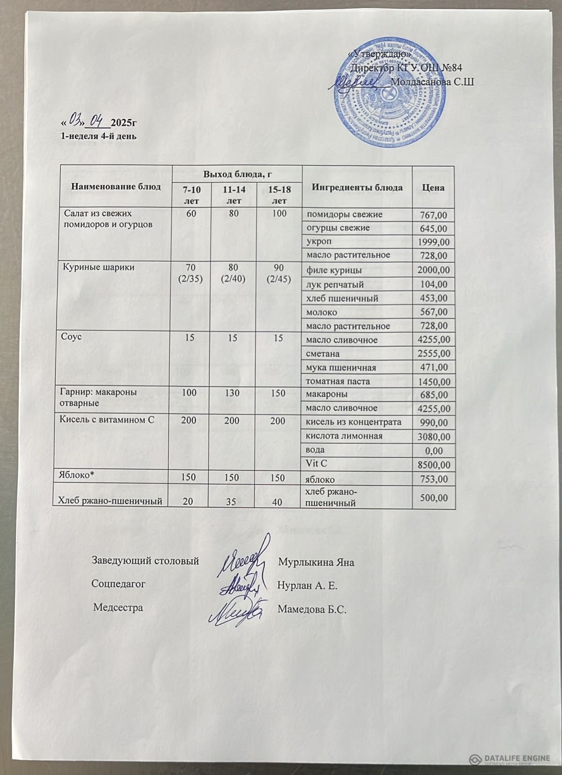 Ас мәзірі 04.04.2025ж.