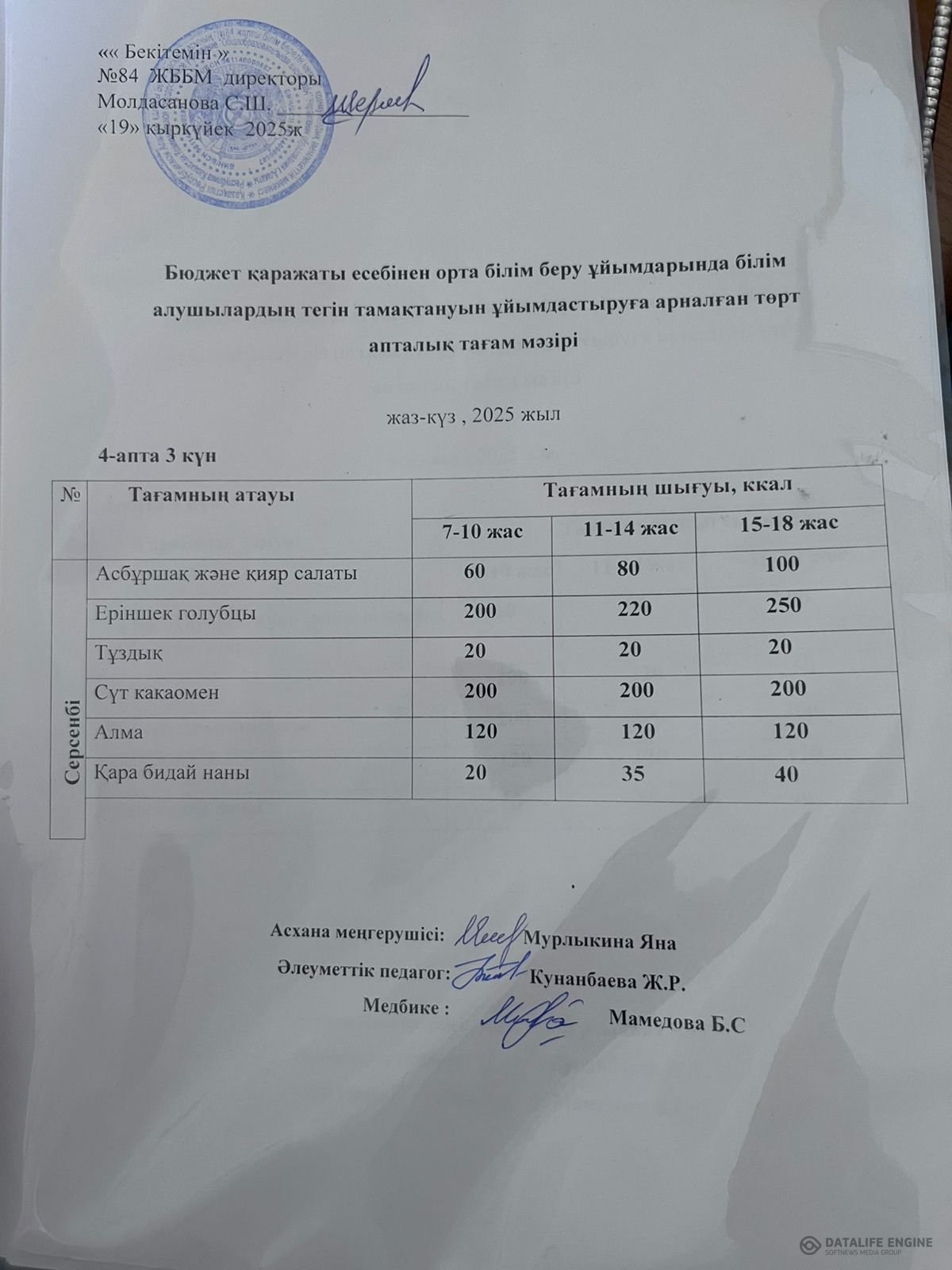 Ас мәзірі 24.09.2025 ж.Меню 24.09.2025 г.