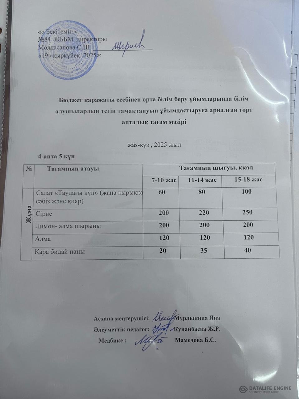 Ас мәзірі 26.09.2025 ж.Меню 26.09.2025 г.