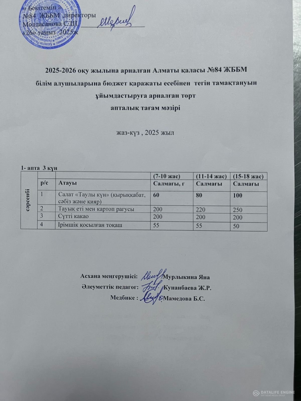 Ас мәзірі 26.09.2025 ж.