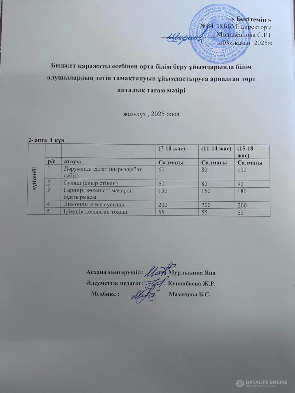 Ас мәзірі 06.10.2025 ж.Меню 06.10.2025 г.