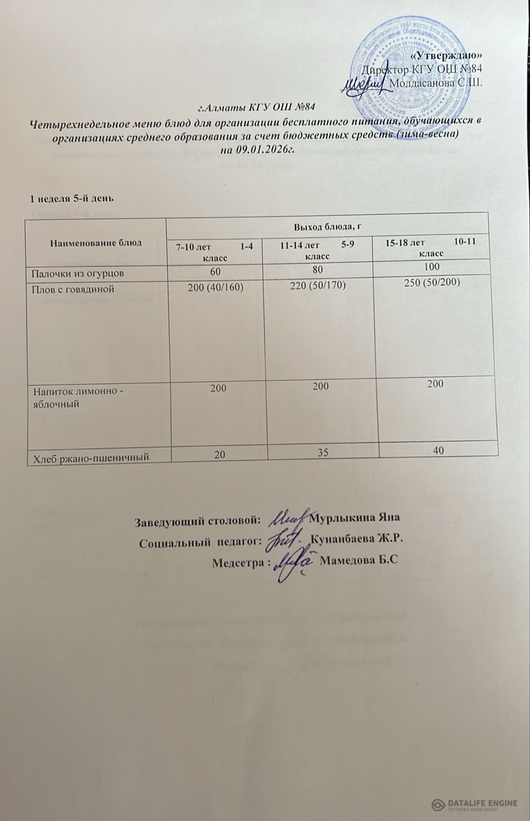 Ас мәзірі 09.01.2026Меню 09.01.2026