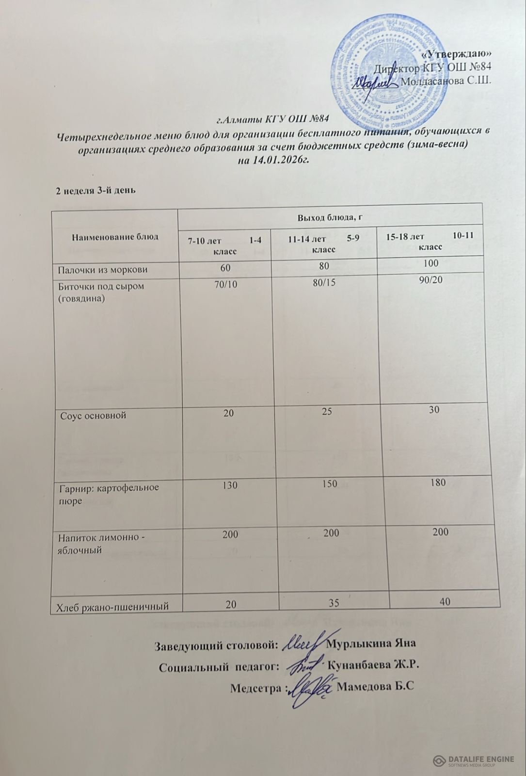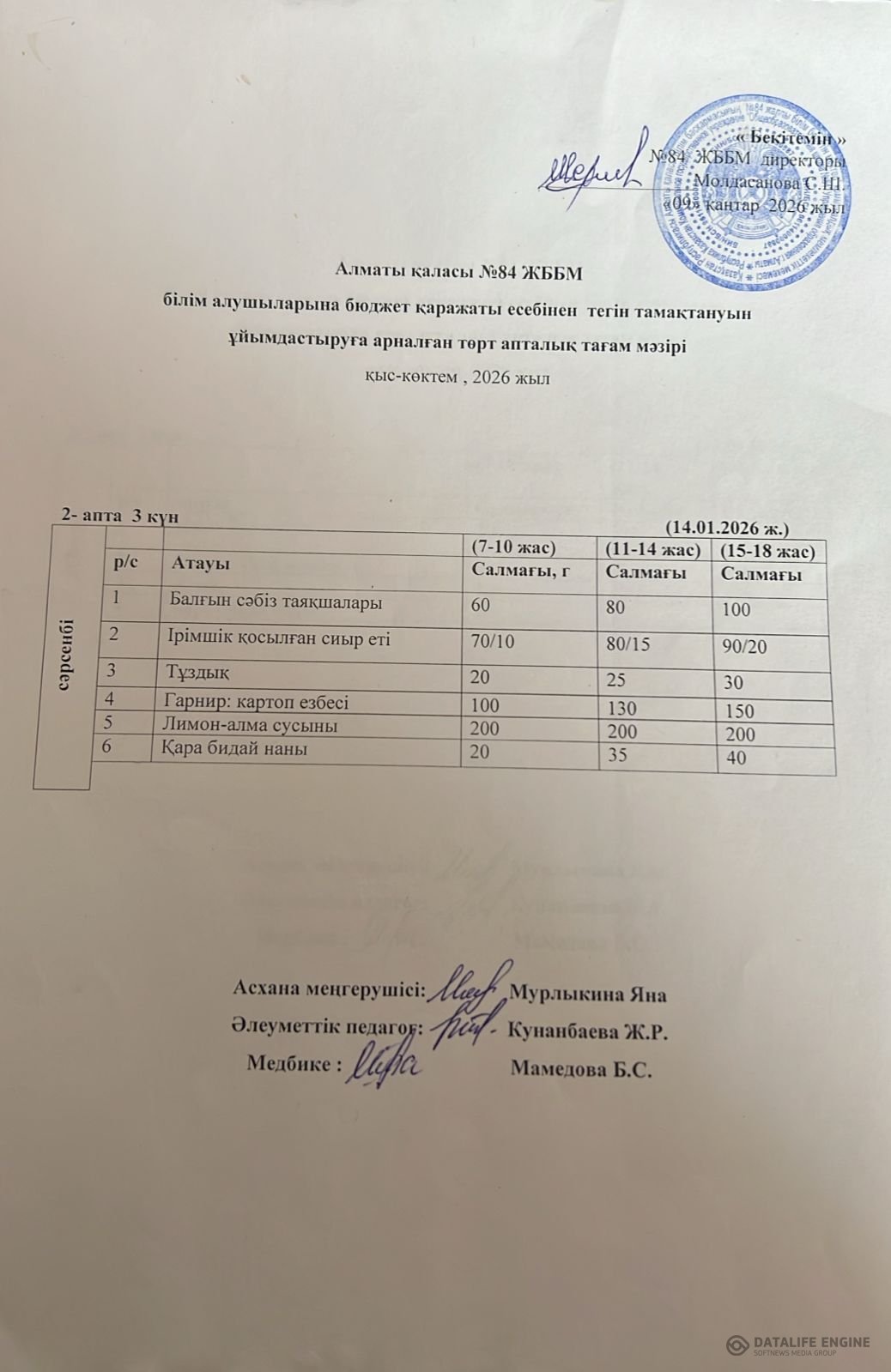 Ас мәзірі 14.01.2026