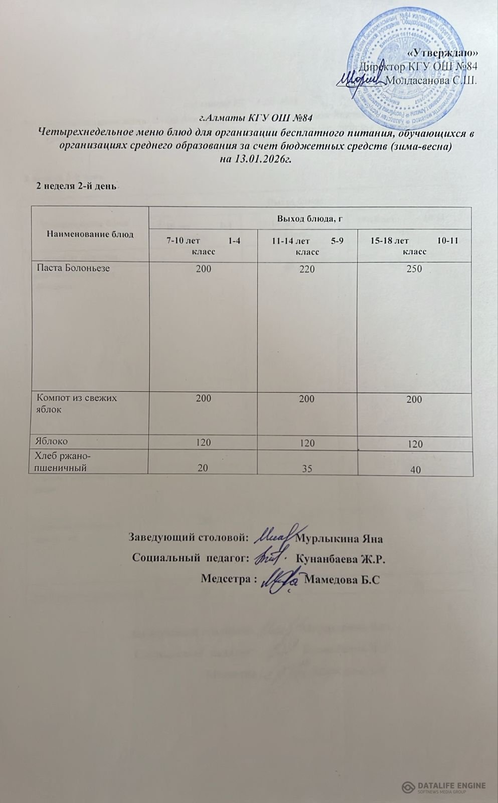 Ас мәзірі 13.01.2026Меню 13.01.2026