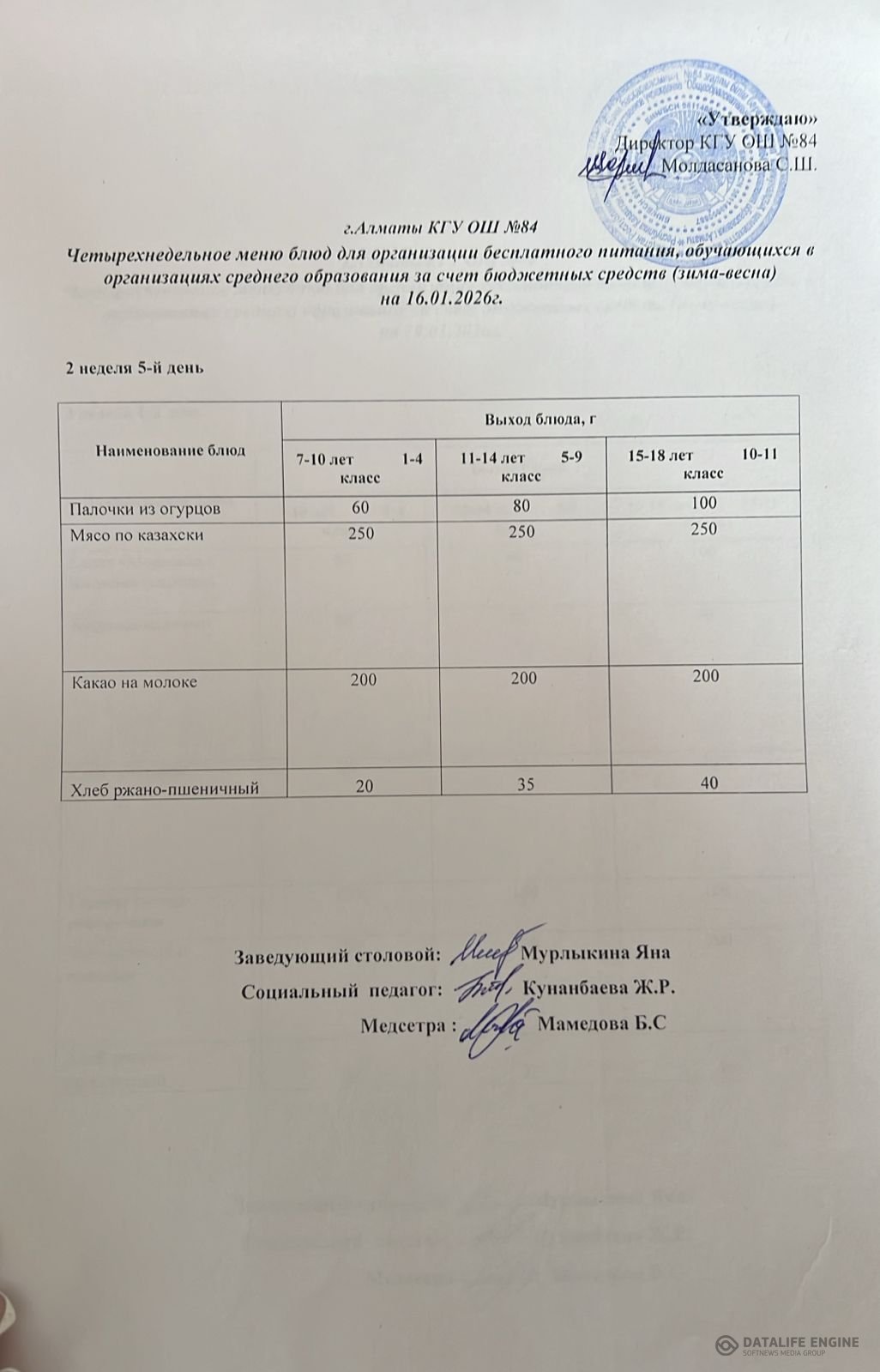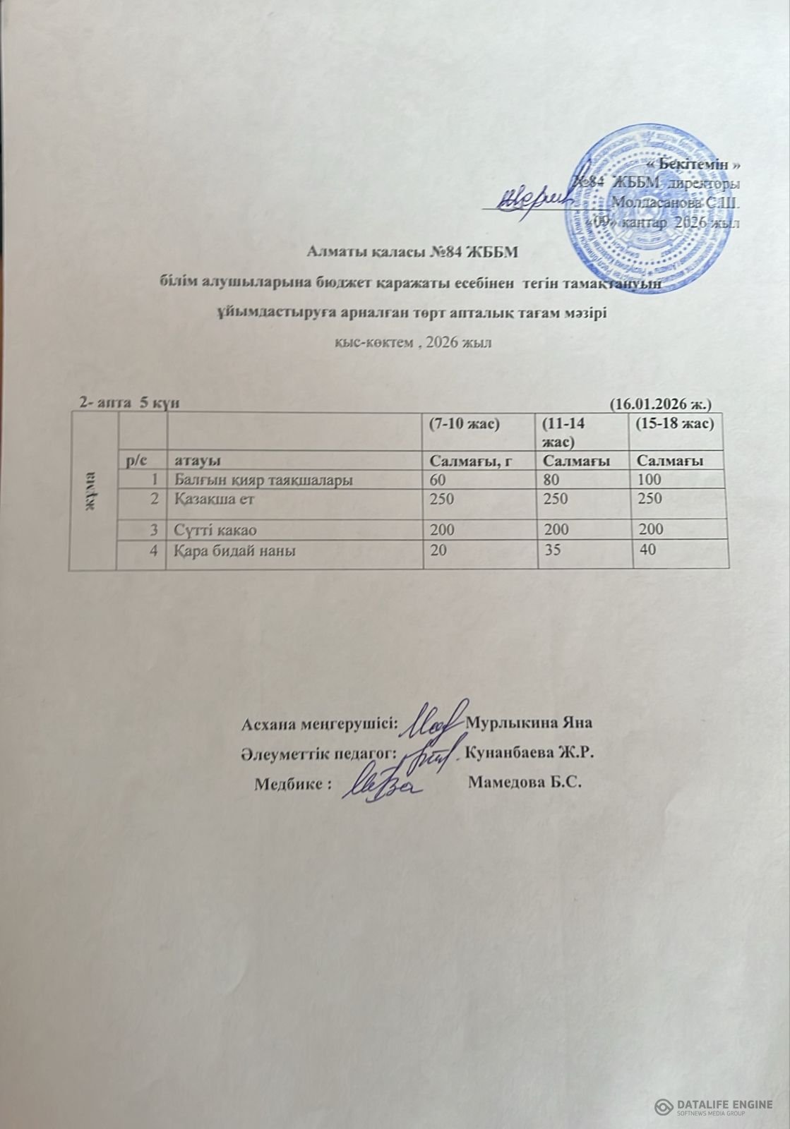 Ас мәзірі 16.01.2026Меню 16.01.2026