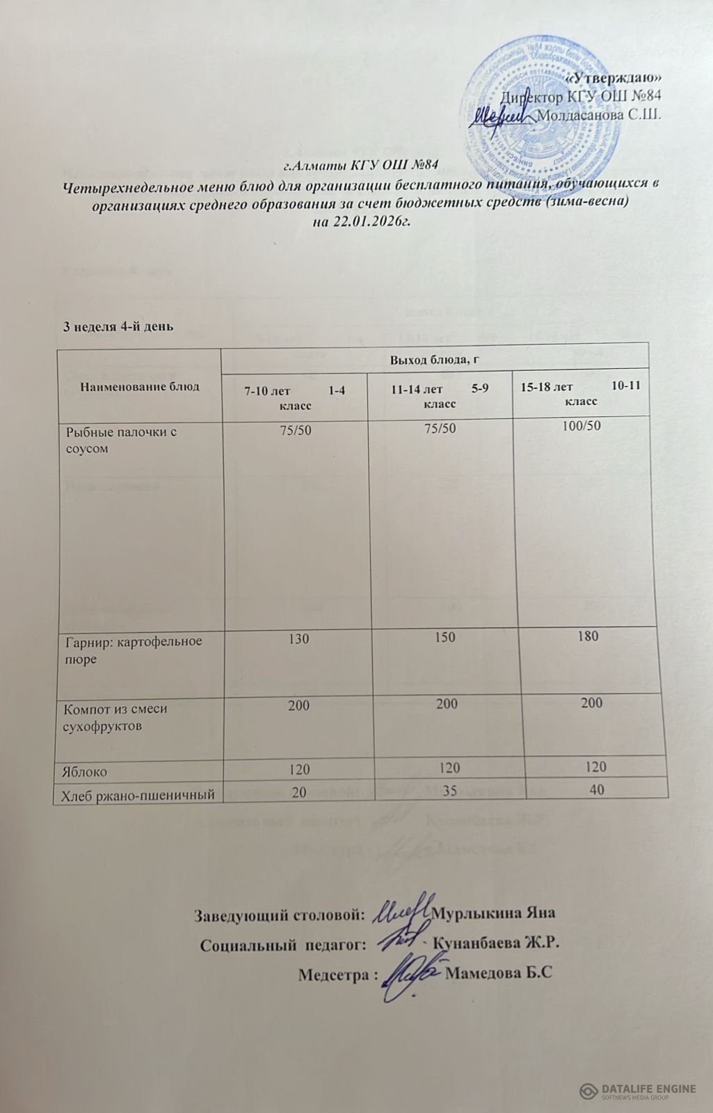 Ас мәзірі 22.01.2026Меню 22.01.2026
